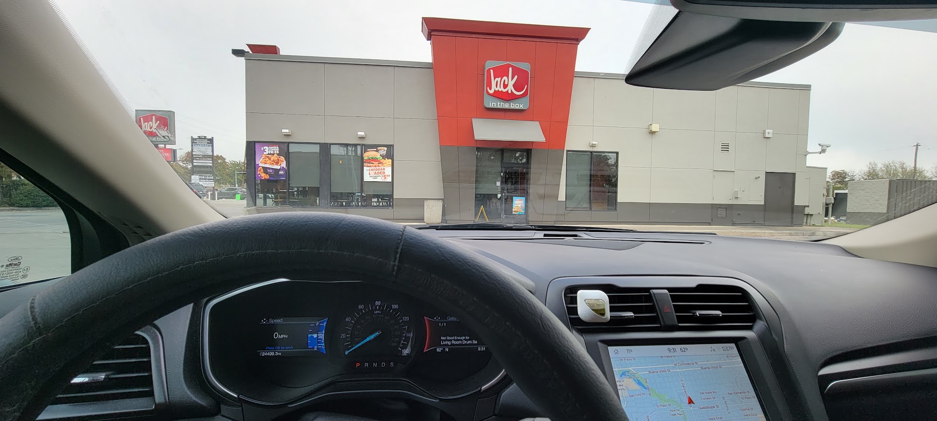 This Jack in the Box is in a VERY dangerous area. Seems to be a haven for the homeless. Some are seriously ill and can be suddenly aggressive. I am deeply concerned for the staff! I feel the company should do more to protect their staff and us customers! The staff are targets. They have had to keep their bathrooms locked. Customers have to wait at the counter but the staff is required to walk down a hall, with a person following and COULD EASILY BE SHOVED THEN LOCKED INTO ONE OF THEIR BATHROOMS WITH A VIOLENT PERSON. I didn't see any cameras in that hall.