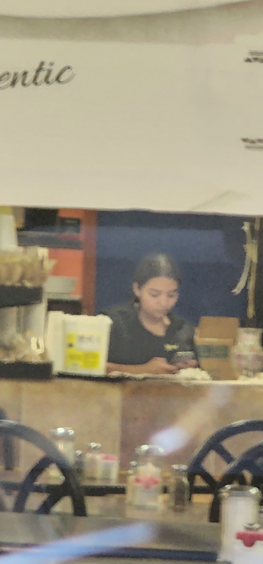 I went there an hour before they close and they told me it was only to go. Then all least 5 more groups of people walked in and they told them the same thing. The owner probably don't even know they are doing that. Just because they wanted to leave at the exact time. Or because one of the girls boyfriend was there. She literally would do something and then go back to his table and sit with him. And the other server was on her phone since they "didn't have anything to do left" because they kicked everyone out when they told them it was to go only. That was at least 200-300 dollars extra for the owner. There was only one table of 2 adults and 1 child. The restaurant was empty for they to say they couldn't take anymore tables. 🙄