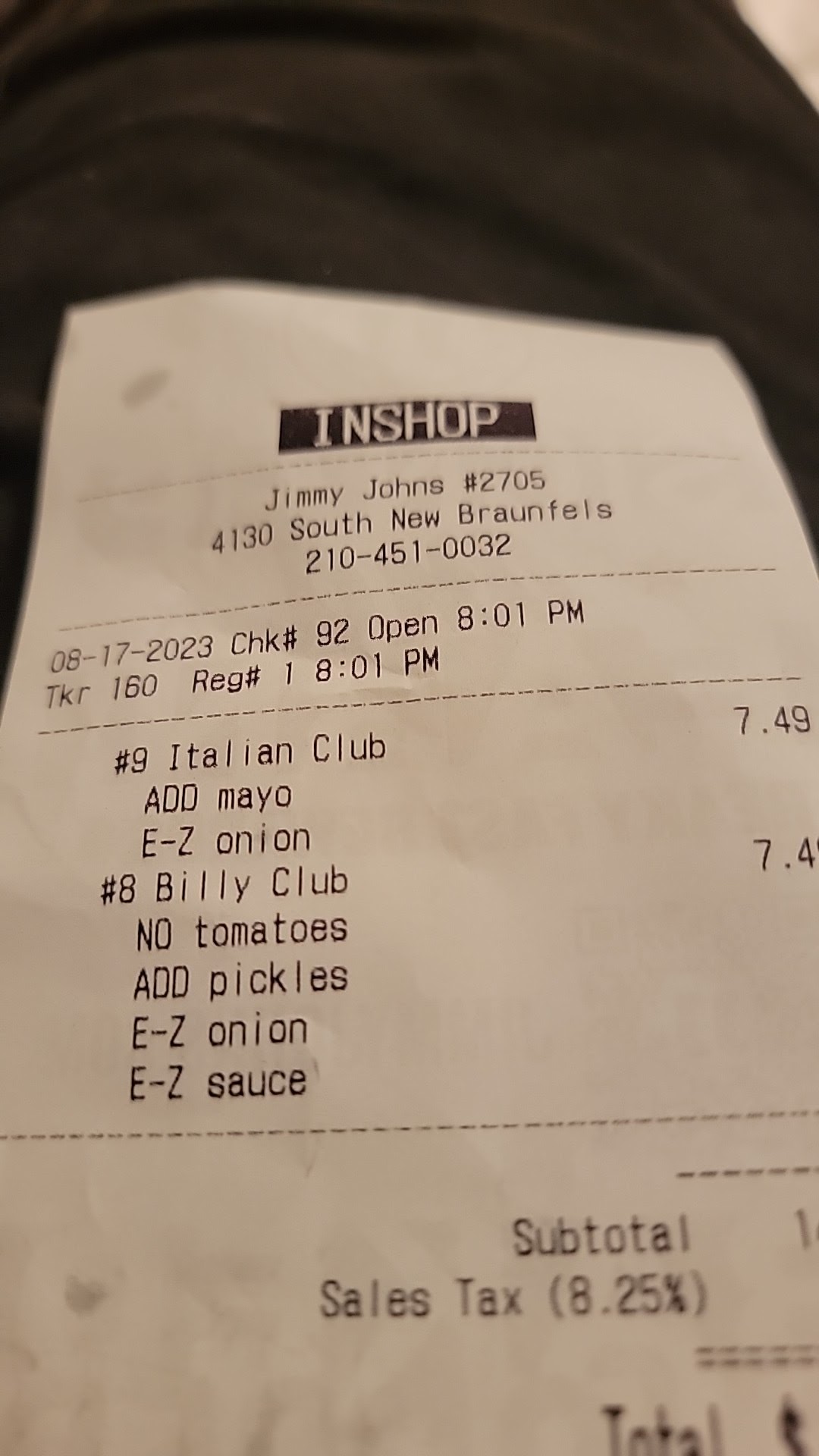 My nice and accurate review of Jimmy John's on New Braunfels. I placed an order for pickup at 1:37pm on a Sunday afternoon. My order was not started until I arrived at approximately 2:15pm. There were two other customers waiting on their online order. Now, to be fair, this was right after the lunch hour during busy hours. I was in no rush and was happy to see how my sandwiches 🥪 were made anyhow. The gentleman that prepared my sandwiches was named Abel. He prepared them all correctly. I ordered a #8, #16, custom #5, custom #3, four regular chips and 2 sweet teas. The employees were helpful and courteous. I was assisted with carrying my drinks to the car. My reason for not giving 5 stars would have to be the dirty floor. But as I noted earlier, I arrived right after the lunch hour. I would definitely visit this location again if I'm in the area, simply because the employees were pleasant to speak with. Good P.R. beats some dust bunnies 🐰 on the...