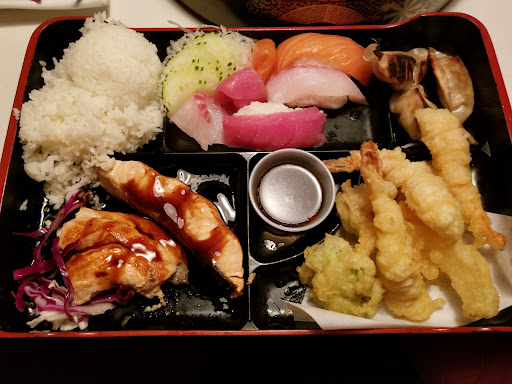 Read moreIt was the most Godawful place I've been to in years. Service was serviceable however the food was of poor quality. We had started of the the Gyoza (4.99) and at first sight presentation was under par. It did not look edible to be quite honest. Additionally it tasted like it just came out of the freezer. The "meat" inside was clumpy and the outside soggy. Gyoza is supposed to be crispy not soggy. Our next dish was the sashimi set C (22.95). I will begin with saying it was not worth the money. The first problem with this dish was that there was too much rice for the fish. Putting too much rice in a sashimi takes away the umami from the fish itself. Sashimi is about the fish, and the rice but in this regard it was just too much rice. The fish itself was of poor quality. It had tasted as if it was in the fridge for days and I was eating leftover. Last but not least is the Japanese bento box 2 (16.95). Upon first look at the dish I already knew there was too much sauce. Sauce was Unagi sauce and it drenced the overcooked salmon. Which made it of course at least a little edible because they cooked the salmon to death. It was so tough, I had trouble breaking it with my fork. Furthermore it was tough to chew and it was just completely dry. Tempura was not at all crunchy, rather it was oily and of course the prawns were overcooked. The sashimi I received as well was of course discouraging and the Gyoza was completely burnt on one side. If it's not soggy it's burnt. Again they had included too much rice for this dish. Overall my experience with the food here was unacceptable. The dishes were overpriced for what I was getting and the flavor was just not there. Furthermore the place looked drab, especially with the three different wood paneling. Will not be...