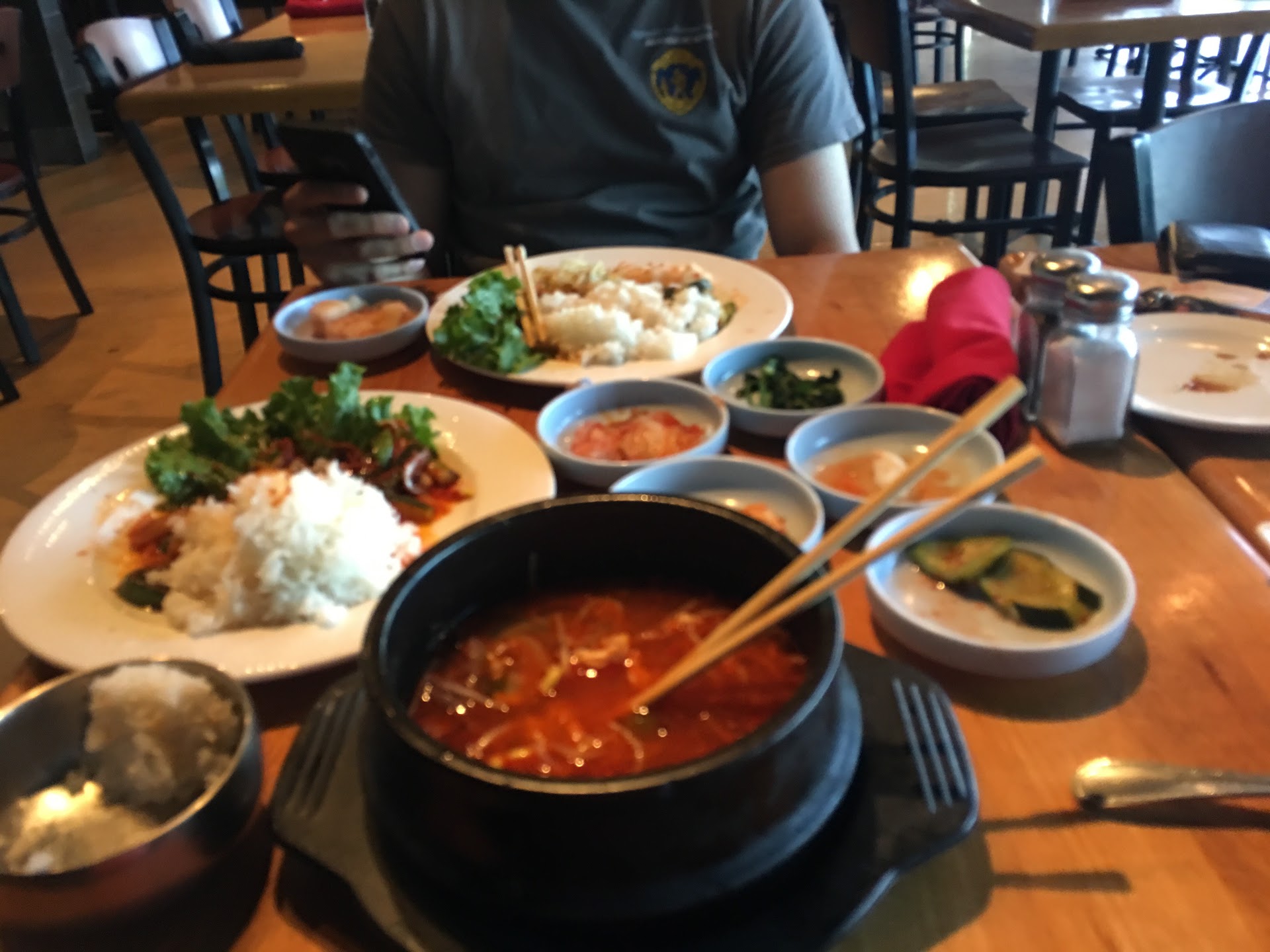 Read moreService was sub par. The young server wasn't very attentive and never offered us a second drink (really missed an opportunity to grow our check). My 3 stars are only based on the food and restaurant, however. I have never been to a korean place that doesnt serve soju by itself. Not being able to mix my soju with my cass seems fundamentally not korean. They had a list of flavored soju cocktails but were out of all these soju (ordering mistake?). The banchan is also questionable. If you order an entree you are offered to choose 3 of the possible 8 or 9 items as side dishes. I went with a friend and we strategically got different ones to share, but they serve all the banchan on the plate of food you ordered, like a western entree. It made sharing a bit more cumbersome and less authentic. Being stingy with banchan is not a good sign. I had the galbi which was tasty but the quality of beef was not very good. I had some stringy connective tissue in most bites. TLDR; Overall I think I would like to return and give them another go as I did enjoy the flavors, but I was disappointed in my service as well as the lack of typical korean elements such as soju and normal generosity...