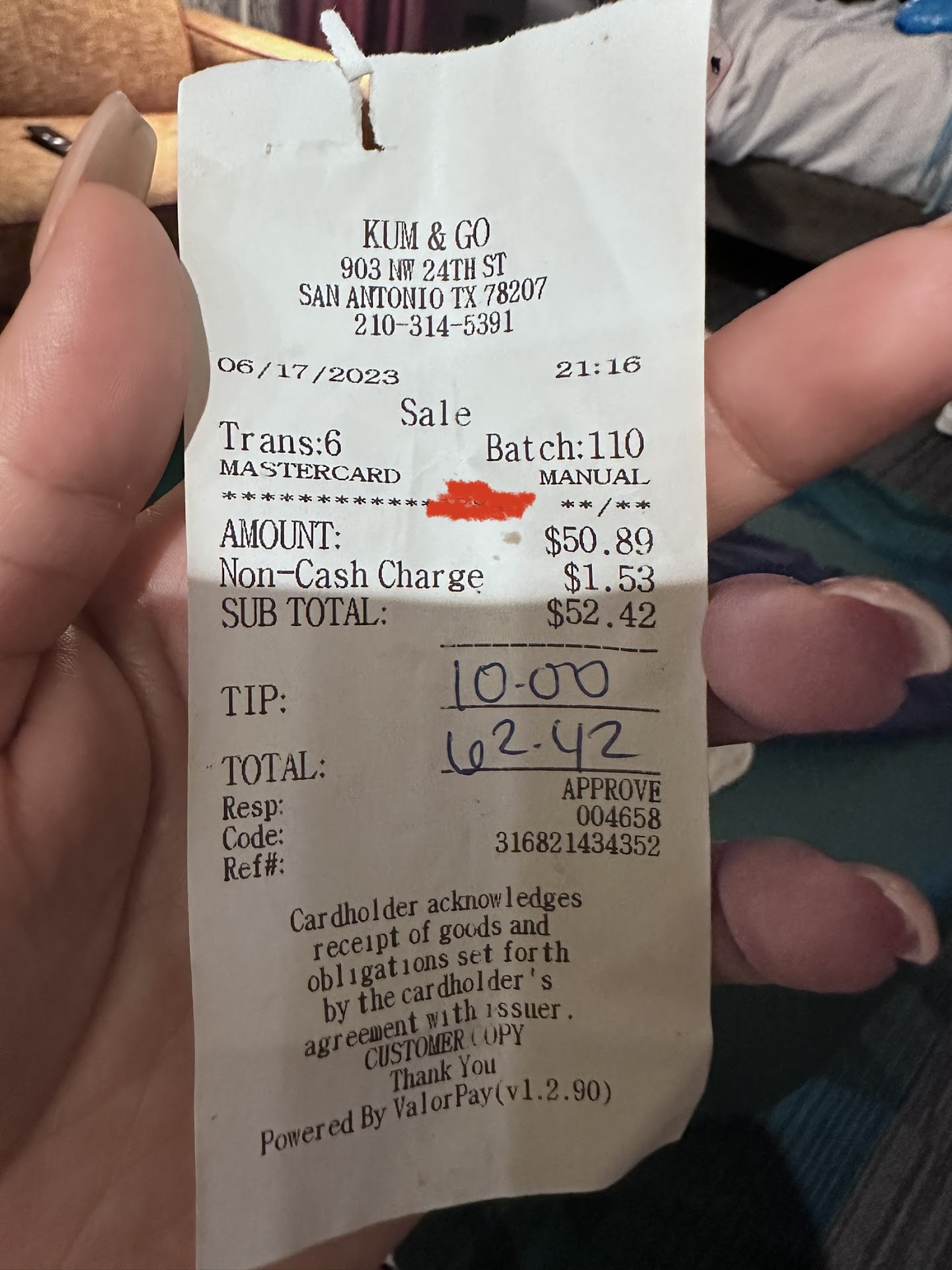 Everything started fine until we called to ask since it had already taken more than an hour and the lady who answered was quite rude, and when we asked how much longer it would take, she herself told us that if we wanted to cancel in a rather rude tone, we canceled, 20 After a few minutes the delivery man arrived and he was kind and apologized for the late delivery, when we saw my children hungry we decided to keep the order, the food was good, but the woman on the phone was not, my purchase was made on June 17...
