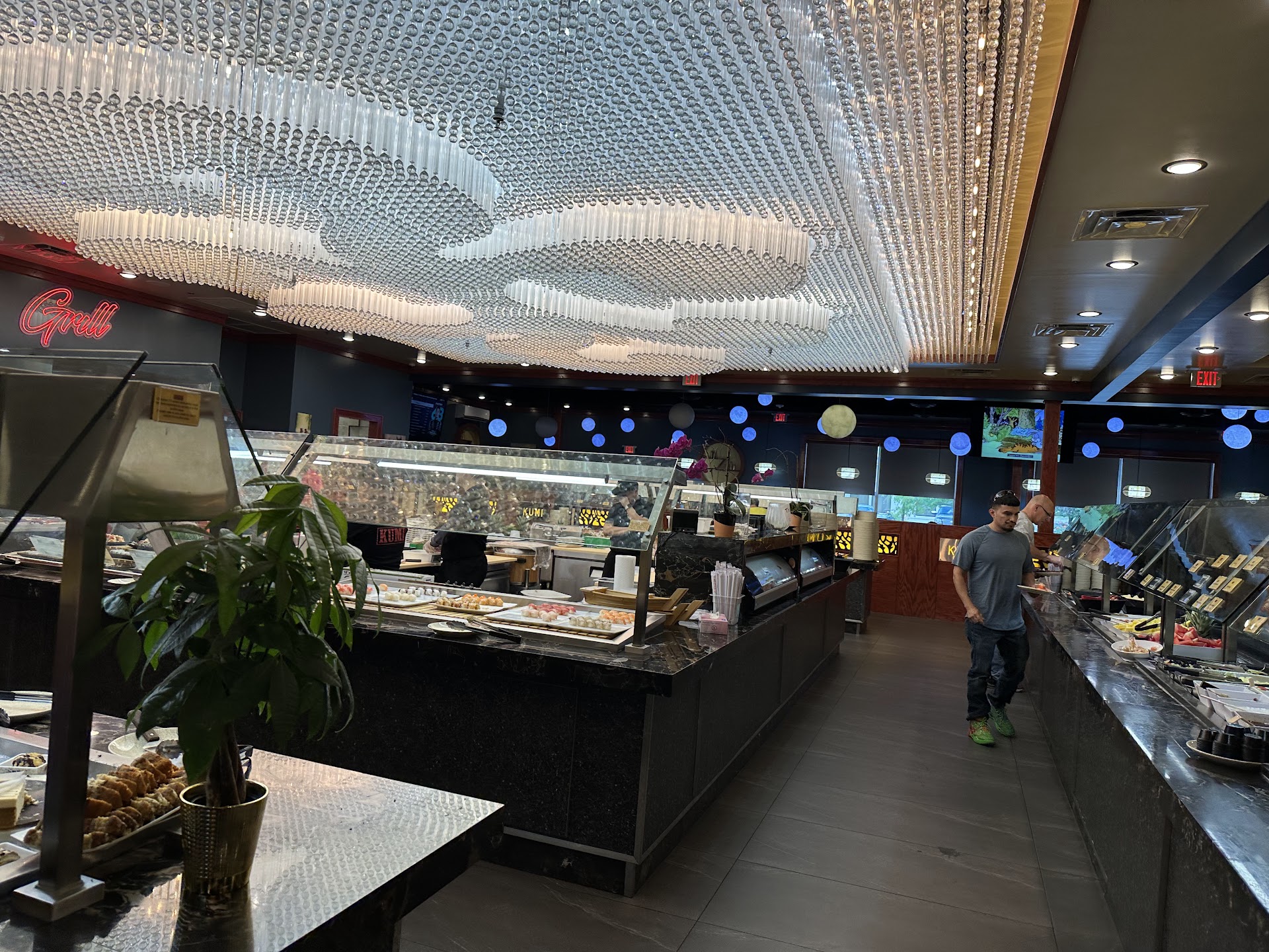 Read moreI visited Kumi for lunch and dinner on 3 separate occasions. The seating is super crowded. Itâs like they squeezed in as many tables as possible on their floor space. When people are seated at tables together, you cannot walk through. Itâs like a maze to try to find a way out. They also have booth seating which seemed nicer and didnât need to worry about people trying to get through behind your chair.. The food was good. They had the standard Chinese buffet foods you normally see at other restaurants such as beef w/ broccoli, sesame chicken, general tso chicken, cheese rangoons, egg rolls, rice, noodles, hot and sour soup, wonton soup, egg drop soup, miso soup, etc. But the difference is the number of seafood items. They had a lot of shrimp dishes and cold snow crab legs. The steam crab legs are not offered during lunch. There is a ramen and grill area where they will cook to order. They have different types of sushi and can also make sushi to order. It is not quiet for an intimate setting, but no buffet restaurants are quiet that Iâve experienced. It was very clean and the restrooms were very clean. If youâre hungry for shrimp and crab legs, this is the place to go! Where else can you eat unlimited crab legs for lunch? During lunch, the parking lot was surprisingly almost full in the front and sides but I was lucky enough to find a spot in the front. Weekends is a little more difficult to park and the restaurant was full and kind of noisy but thatâs to be expected for the amount of people. They offer military discount. Lunch was $20 and dinner was $30. Drinks are not included in the...