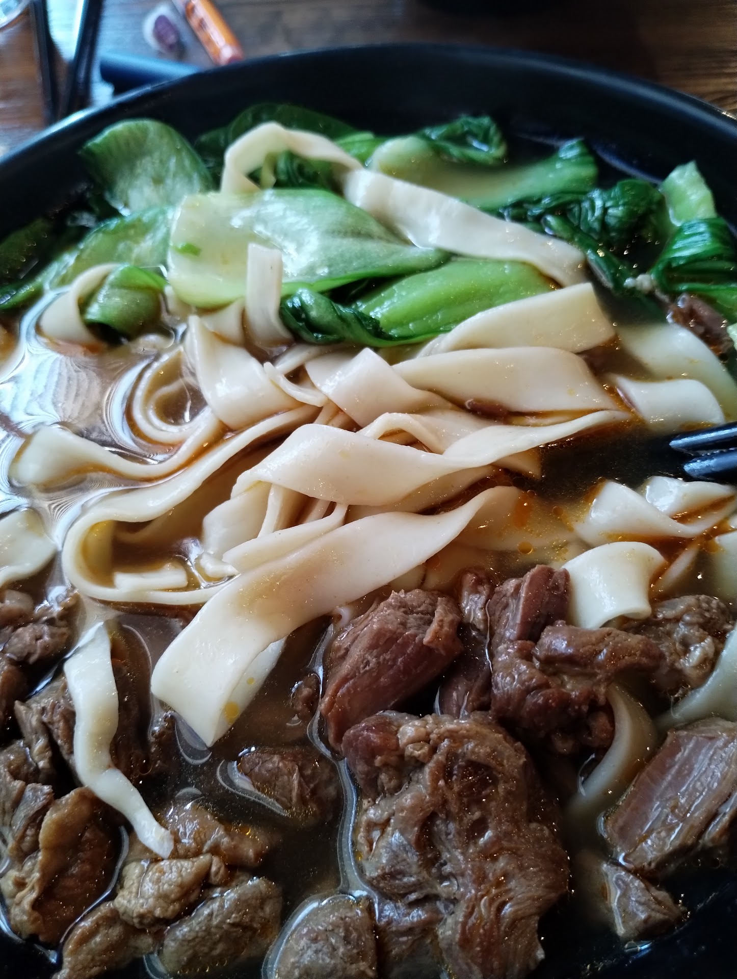Read moreOverall service: Everyone was extremly kind and polite. Food was amazing and will be returning :) Wait time/seating: When me and my husband went we went during lunch time cause they were busy with good business but were still extremly attentive. We waited about maybe 5 minutes for a table and we got service right away. They have plenty of seating but no more than for 4 people for some tables. It's a small establishment so please be mindful of them. What was ordered: For myself I got the Pork Belly Noodle soup with thin noodle. My husband got Lamb Noodle soup with thin noodle and level 2 spice. We shared an order of Pork and Chive dumplings (10 piece) The food: They are very generous with the portions of noodle, broth, and meats, they even throw in some blanched greens as well. The Pork Belly Noodle Soup comes with an egg as well. We had to take the rest of our meal to go and they provide containers and bags. Spice levels: If you struggle with hearburn like I do, level 1 spice is probably as high to go but if you like a good kick go for level 3, if you want to feel the heat then go for level 5. Drinks: They do not have sweet tea BUT they have unsweetened tea with a lot of sugar packets, be sure to make clear that you want a cup of ice and room temperature unsweet tea if you want to sweeten it yourself. They have canned drinks and you can ask for a cup of ice to go along with it Additional note: Please let them know if you have a peanut allergy, they have signs posted about it everywhere on their TV menus and their physical menus. (Not applicable to me) Price: Everything was extremly reasonable for the portions of the food. Final bill with tip for two of us was around $35