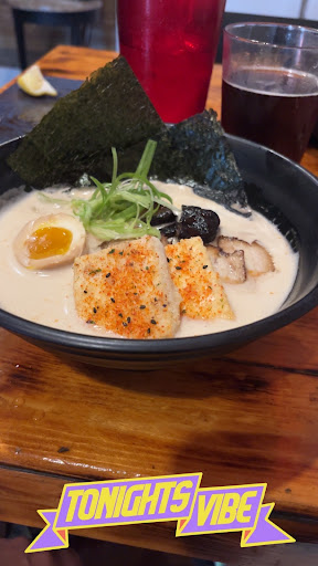 Per the recommendation of the server I tried the goat meat ramen. The broth and goat meat were overly salty. No issues getting swapped out to the tonkotsu. The tonkotsu was good although the cook was light on the amount of noodles. Also, Not as many ingredients as I’m used to having consisting of a small piece of nori sheet, a few mushrooms, half a marinated egg, 1.5 cup of noodles, a very very thinly sliced chashu pork belly. Definitely not worth the $14 I paid. It lacked bean sprouts and other basic essentials for a nice hearty bowl of ramen. A typical ramen bowl will fill you up without having to dive into the broth, not in this case.