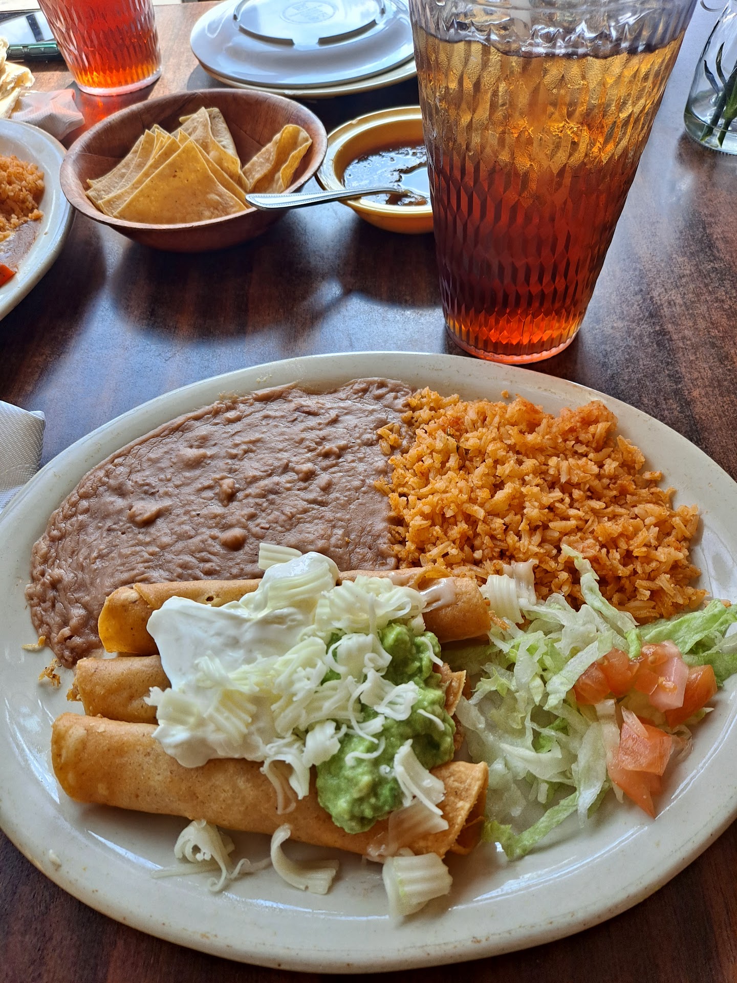 Finally! Another restaurant that offers my favorite combination plate of ERB (enchiladas/rice/beans) and a puffy taco. We usually have to combine and/or substitute items to achieve this particular combination which can add another 50% to the cost of the meal at times. The Cazadora Plate, a lunch special, quickly ended our hunt for a satisfying selection.