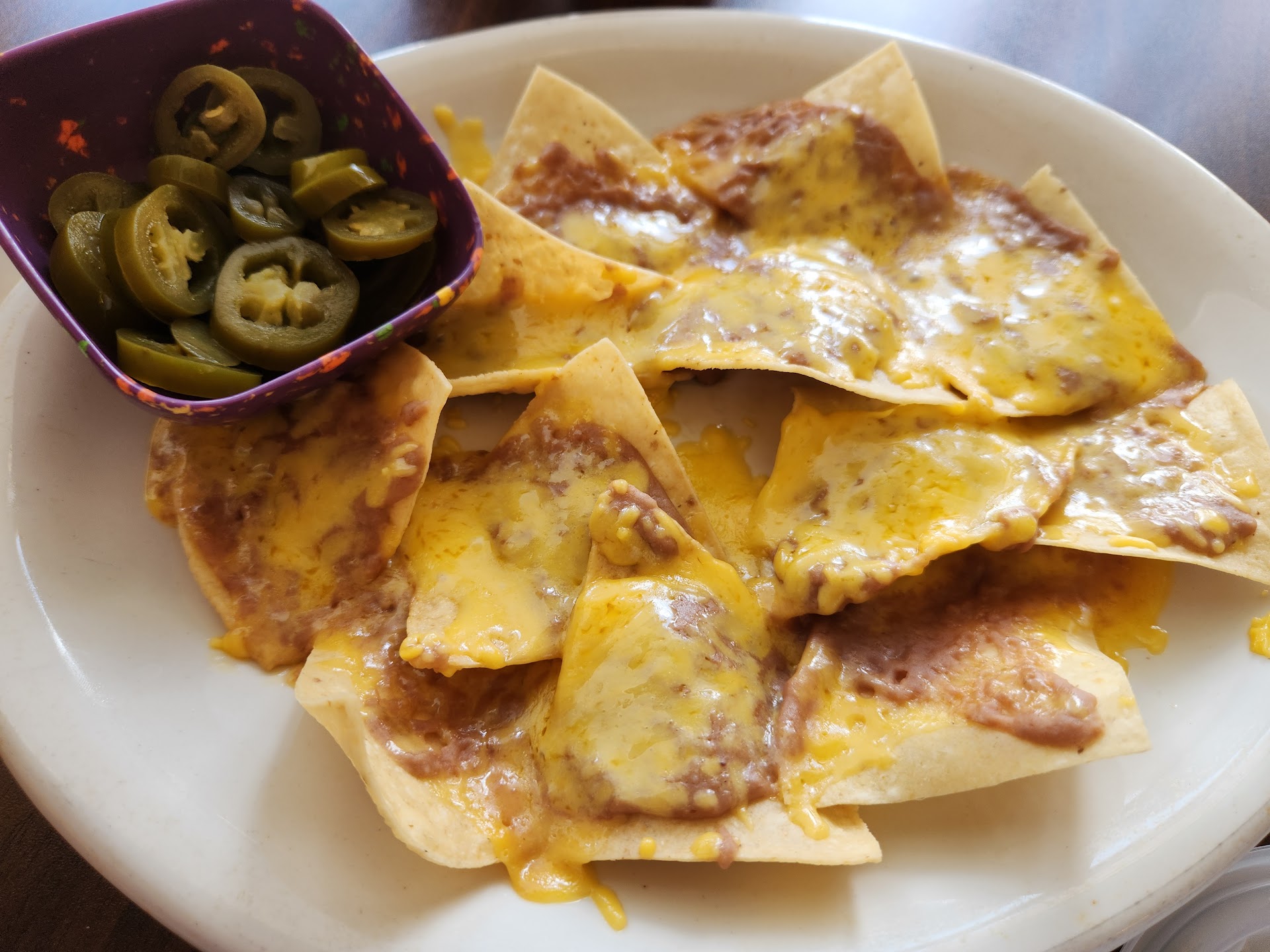 I did feel a few nostalgia pangs as I sampled the cheese enchiladas. Not government cheese, but more like I remembered the taste from the halcyon public grade school enchilada Wednesdays. (Wife thought the cheese tasted funny, but she also went to school those formative years in Hawaii and for all I know had Spam Wednesdays instead). The gravy topping would benefit from a teaspoon or more of picadillo, but there I go again imposing my chili con carne topped ideal on a perfectly good enchilada.