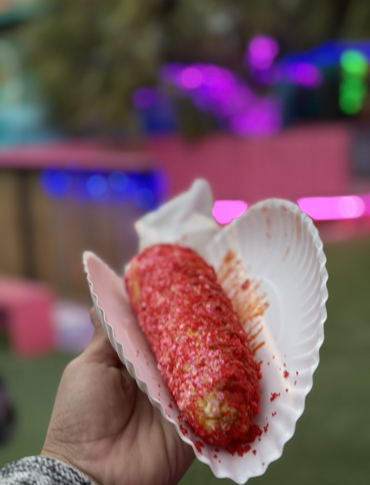 Only fits a few corn In a crockpot Person attending was rude Could have notified customers ahead of time that were in line just for corn she would not have any available until the crockpot was done wasted time waiting in her line just for corn Then she would not take an order and have us come back when they were done because she would be unable to see the previous order. Waited 15 mins got back in line and she ran out of corns with two people in front of us wasted an hour of my life Person working the stand not motivated lacked energy you would get better service off an actual street vendor and better quality food.