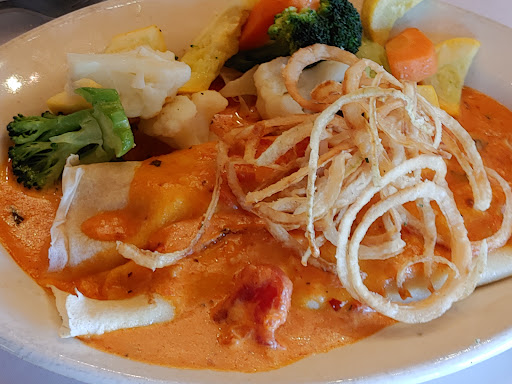Cons we waited over 10 min for someone to come to our table after being seated. She brought water and took off even though we were ready to order. then it was another 20 min, yes, 20 min that we waited. My husband had to get up and asked the hostess if our server could take our order. Another 8-10 min went by and she eventually came and apologized which we understand, it wasn't her fault. 10 min after THIS we got some bread, it was just ok we waited again, truly, another 20 min! the bathroom is gross, in desperate need of some repairs. the Caesar salad came - and it was DRENCHED in a honey mustard dressing. Like really, all 3 of us tasted it, and it was not Caesar. You'd think, "Why didn't they say anything?" Well because the server neve came by again and at this point we've been here an hour and we were hungry. the minestrone soup came 15 min after the salad. Ok, I understand everybody has their own recipe, but this had SPAGHETTI in it. And it was clearish, yellow, like a chicken noodle, not at all thick tomato based. My husband and son were gagged and I tasted it. Sooo salty and it was barely lukewarm. Look, it didn't need to be steaming, but this was just above room temp.