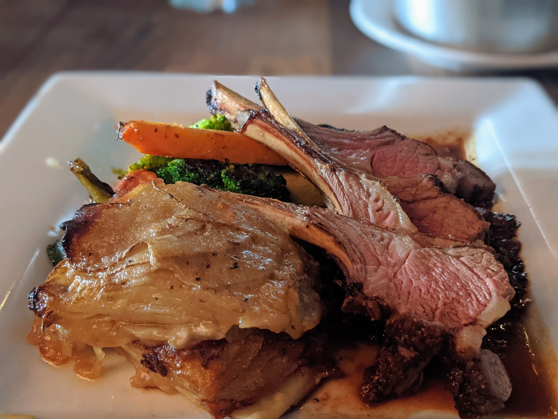 I ordered from the specials of the day, beginning with white bean soup that had a nice mirepoix base and bacon providing support to the beans. I found it a little under-salted, possibly due to a compensation for the bacon which never materialized. Nevertheless, enjoyable.