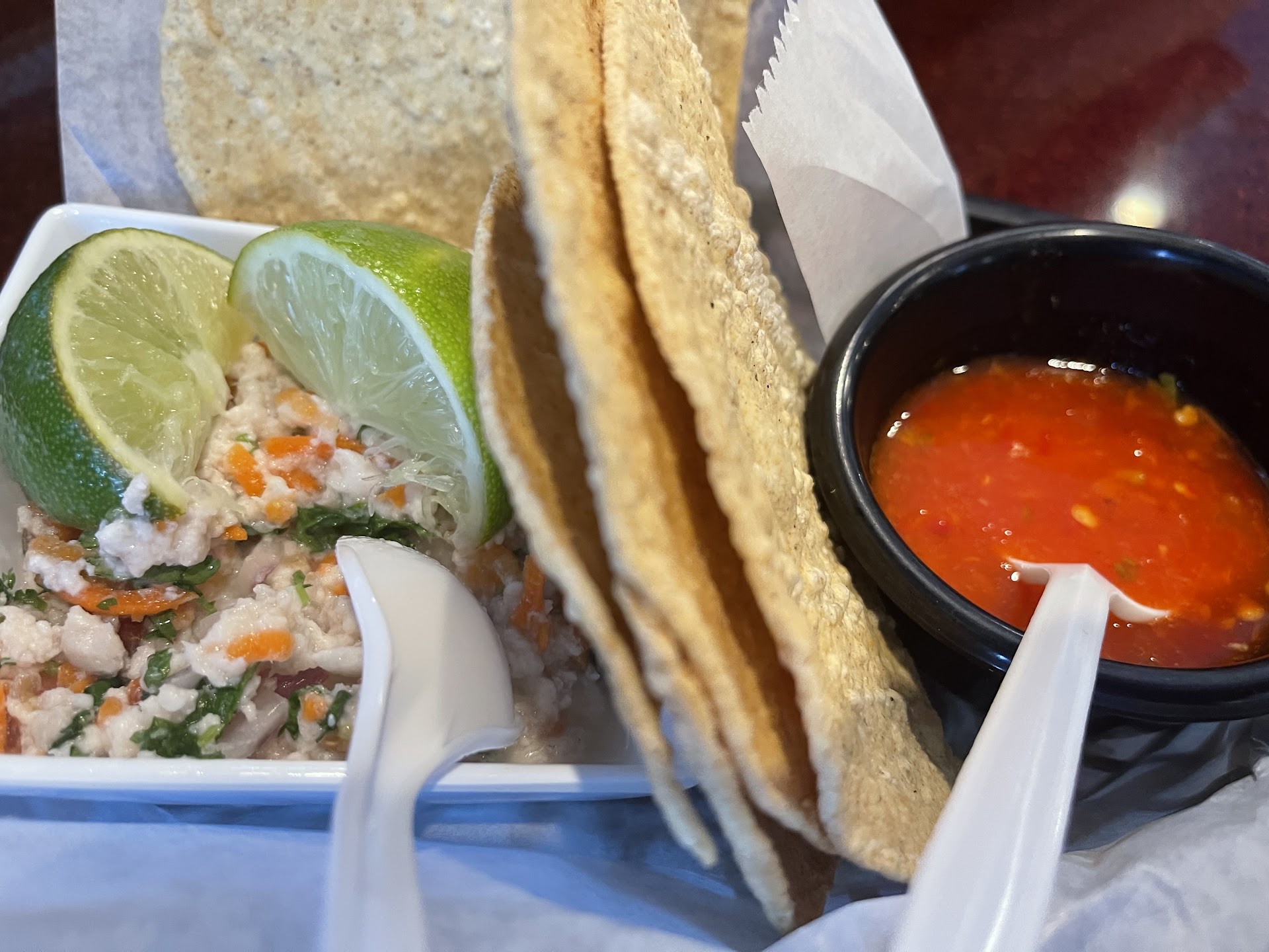 Read moreThis restaurant has been the best Mexican Seafood restaurant in SA thus far. They bring you Ceviche which is fish with lemon. It tastes so good! I give that alone a 5. They bring chips and Red Salsa. The Red Salsa isn’t that great tasting, but it’s edible. I found this restaurant to be giving because they treated us to a snack before our meal. That was nice. My shrimp platter was excellent because of the batter!! Wow!! All I can say is fried shrimp never tasted this good!! The veggies were bland, and they needed seasoning, but they were still edible and enjoyable with that Pancho Bigotes you see on my pics. That was amazing! Now I need to find out if HEB sells it because I loved it. It was Cilantro and Serrano flavor. The fries were bland without flavor and a bit hard. I didn’t eat mine. The beans were great especially because I ordered Pico de Gallo for them, and it was excellent! I didn’t like the fact that they don’t carry Cocktail Sauce or Horseradish or Tabasco. I always mix those three for my shrimp, fried or not. Anyhow, I do recommend this restaurant and would definitely be returning. Our server was...