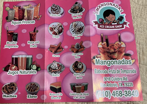 Read moreI found this place about a month ago and we’ve made several trips here since then. I’ve lived in the area for over 15years. We would travel as far as Alamo Ranch for baskin robins or even marble slab and the prices are better here not to mention the serving sizes. My oldest is 11 with a big appetite and he can’t even finish a one scoop serving ($2.) Everything is homemade and my favorite by far is the milk chocolate paleta with hard shell chocolate with pecan pieces. I love the variety of flavors and options of snacks. The place is clean and the women who work here are very nice/polite. There is constantly crowds here but the line moves fast. One day my son spilled his maize snack and they gave him a whole new bag, which was unexpected and very sweet of them. I am awaiting for the next employee appreciation day at work so we can hire Las Mangonadas as they have a mobile freezer to rent for events. Keep up the great...