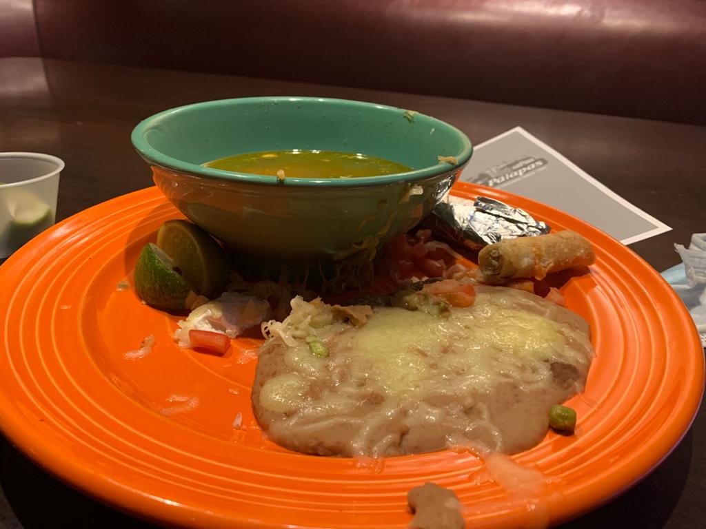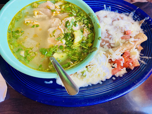 The chicken caldo was very good. It's light and they add rice to the chicken and veggies and it doesn't feel too heavy. Itbsomes with regried beans with cheese and one flauta covered with guacamole and sour cream. The size of the bowl is medium. They use dark meat, which I prefer. I think white meat on caldo does not produce as good flavor as dark meat. White meat may be healthier and many places in SATX use shredded chicken breast but the Schwarzeneggeresque size (I think just created a new word?) of American chicken breasts ('Murica!!) makes it impossible to serve whole or in chunks in anything smaller that a 10-gallon bucket so they serve it shredded. Dark meat can be served in chunks and that's how they serve it here. The beans and the flauta were nothing to call momma about but they were not bad. A flauta plate could perhaps have more pizzazz and more flavor but in this situation the chicken caldo is Tim Duncan and the beans and flauta are the bench.