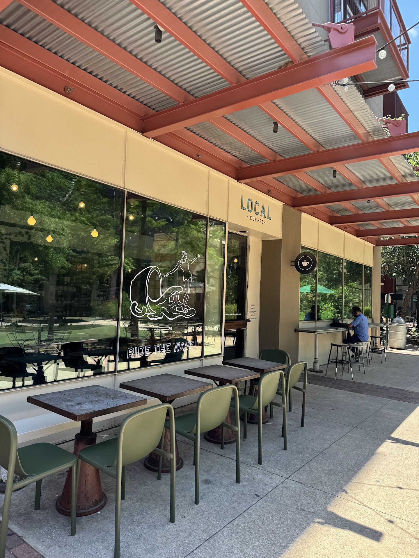 Read moreLocated on a convenient corner, Local Coffee was buzzing with business as it should on a Sunday. Although the line was going out the door, service was smooth with a touch of a friendly vibe. The smell of quality coffee and tea was pleasant and not over baring upon arrival. The bar gives you a clear view of the workstation. My only issue was cleanliness but they were insanely busy. I feel that at the time of ordering that the cashier could mention, "do you need condiments?". I had to ask for Splenda from the young lady in the zone making coffee to grab some for me. I felt that disturbed her flow. She kinda glitched when asked for sweetener. Ordered one hot drink and one cold. The turmeric ginger Chai was perfectly balanced. I did fear the ginger and Chai would fight in the spicey department, nope. Even the temp was perfect. Then I had the dark chocolate almond ice coffee. BRO it was like chocolate milk for adults. I added two Splenda because the dark chocolate was dark lol does that make sense. Anyway if I lived close by they wouldn't be able to...