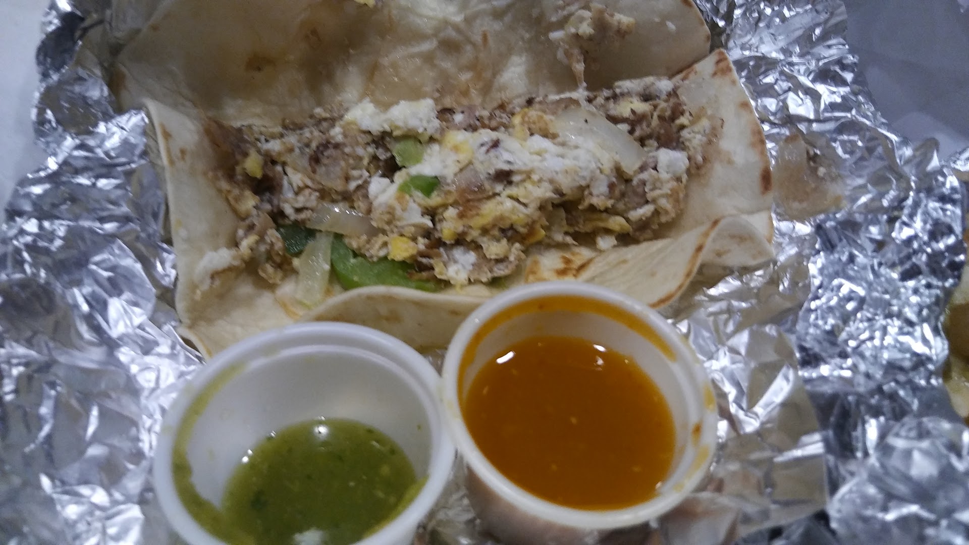 Read morePulled up to drive thru and the lady spoke Spanish. Didn't try to speak English or doesn't speak it Idk. I tried to ask about beef fajitas but I don't know if they have this but it got too confusing so I just told her Pollo quesadilla. Chicken quesadilla. I said it several times. She said it several times. I swore she told me $5.08 in Spanish. Sounded like cinco y Ocho. I got the 8 right but when I handed her the 5 she said it was 7.08. I didn't hear her say siete but maybe she did. Anyways bottom line is I ended up with a steak or beef quesadilla and I don't like those. I made it all the way to work to discover this and I didn't have any back up food and this was my dinner. I tried one and the meat was chewy and too much beef. I don't do beef/steak burritos or nachos or quesadilla. I strictly deal with chicken and ground beef when I do Mexican. I like carne Asada tacos but not the corn tortilla. I seen this beef fajita plate at another restaurant that made me wanna try it. I normally don't like fajita but it looked so flavorful and tasty but maybe I should get it from the place I saw makes it.So other than that I only deal in chicken and ground beef so it was a waste of money while I dreamed of what the chicken would have tasted like. The hot sauce was so spicy and tasty but the quesadilla wasn't my cup of tea. I kept trying to tell myself just to eat but I'm not a fan of that texture of meat.