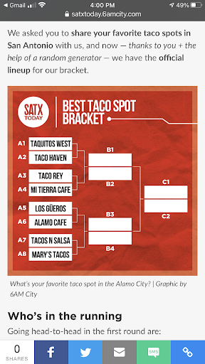 Read moreNot impressed. My wife and I met a friend for brunch after reading about it on some email distribution list I recently became a part of...still not sure how that happened though. In any case, I have to sum it up in the old phrase, "Don't believe everything you read." After ordering huevos rancheros, a migas plate, enchiladas, and they're infamous "trash can taco" I have to say, none of us were impressed. They packaged our food as take-out and then offered to bring me plates after I clearly said were were dining in; not to mention that we were sitting comfortably in the patio area.