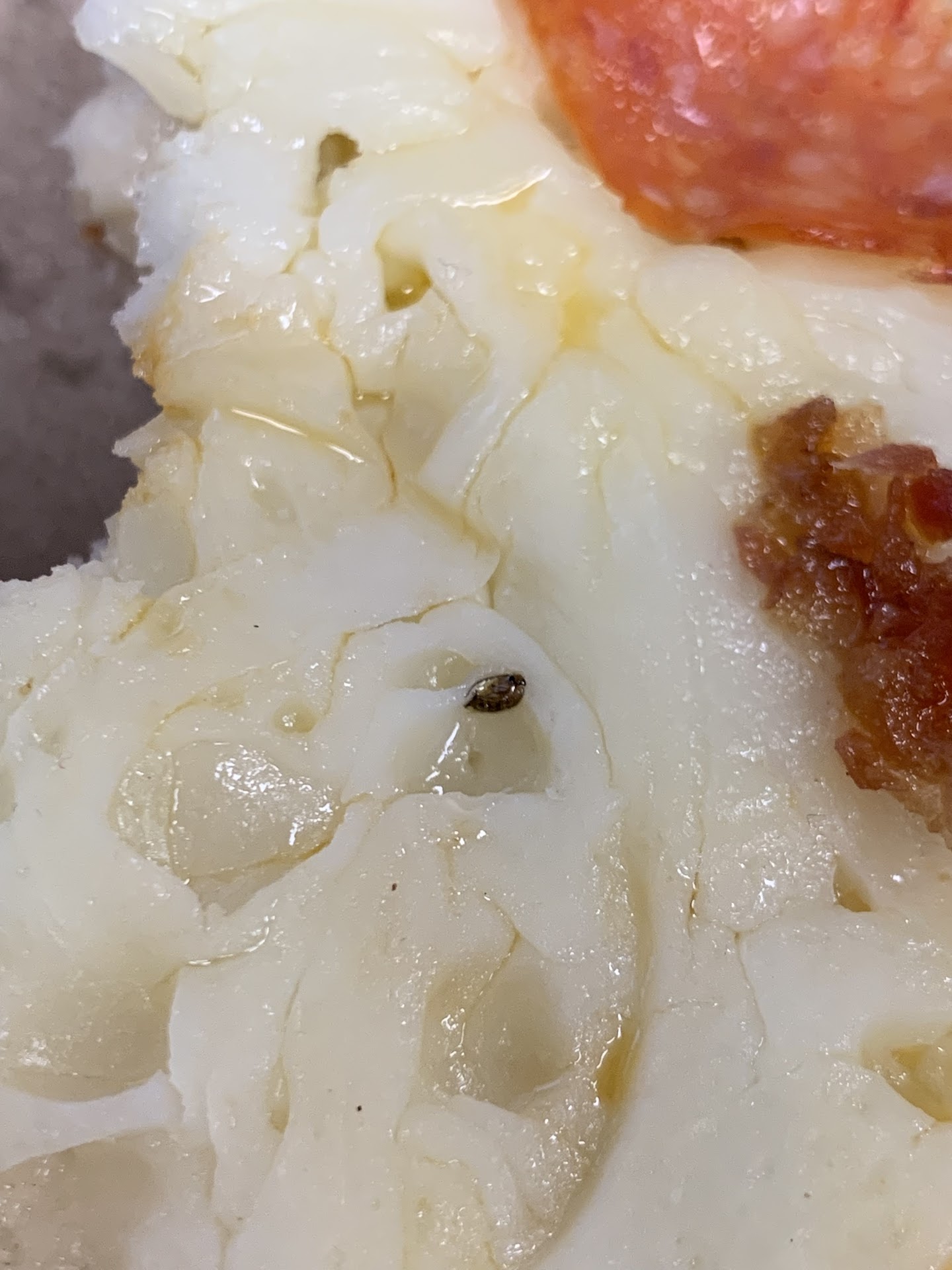That’s when I noticed what I’m hoping is a nat (regardless it is a bug) underneath the pepperoni. The outline of where the pepperoni was place is clearly noticeable from the image. In addition, Knowing that there was a possibility of not finding that and eating it made me regret getting food...