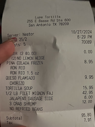 Read moreWe arrived on a Sunday 10/27 around 5pm. A group of 5 of us, but 3 of us got there first. Everything seemed to be going well. We received our bar drinks. My friends margarita was WAY too tart but is too nice to say anything. She specifically also asked for a spicy margarita, and it wasn’t spicy. Alright fine it happens. The rest of our table arrives. They get settled. As they ordered drinks from the bar, I also asked for more chips. Waiter (who was very young, and claimed later in our experience there that he was new) forgot our chips. Okay. Small two things that weren’t really worth making a big deal of. I get it, he’s young and new. We place our food order. My husband and I ordered the tortilla soup, NO cilantro, and the filet mignon skillet dish. When we ordered we asked how they cooked it, medium? Medium rare? The waiter’s response was “uh I don’t know, uh I just started here and I haven’t seen all the food” I scuffed and my husband just responded with a request to make it medium rare if possible and NO refried beans. It even says in our itemized receipt no refried beans. We also asked for a mix of corn and flour tortillas. Our other friends also shared a beef fajita skillet platter. Each platter was For 1. As it says on the menu. There for we should’ve gotten 2 sides of rice, we only got 1. That’s just one of many issues. There was cilantro in my soup, which is why I didn’t even finish the soup. We also didn’t get a mix of tortillas, we only got flour. And there was REFRIED BEANS instead of charro or Barracho beans. We didn’t get any side plates for the skillet. Are we just suppose to eat off the skillet? By the time a manager checked in with us , we were already more than half way done with the skillet but I still mentioned the rice. When I told them about the rice I wanted to say more but they all seemed so occupied of which table needed the most attention around us (which seemed to be our new waiters section) I wanted these issues addressed to the managers but we kept getting interrupted by conversations around us about other tables with managers and our new server. I just gave up at that point and just wanted out of there. We of eventually got the rice and the side plates.. but it was just kind of already too late and just left a really bad taste in my mouth (metaphorically) It was an extreme disappointment and our first time there. Clearly management needs to have their new waiter trained before giving him a full section. I’m a manager at a restaurant and I make sure my wait staff is fully knowledgeable about everything (the menu, splitting checks, alcoholic beverages etc) before giving them a full section. He seemed overwhelmed, forgetful and very unapologetic. Even the managers as well. Won’t be returning. I will add, the filet mignon was cooked to...