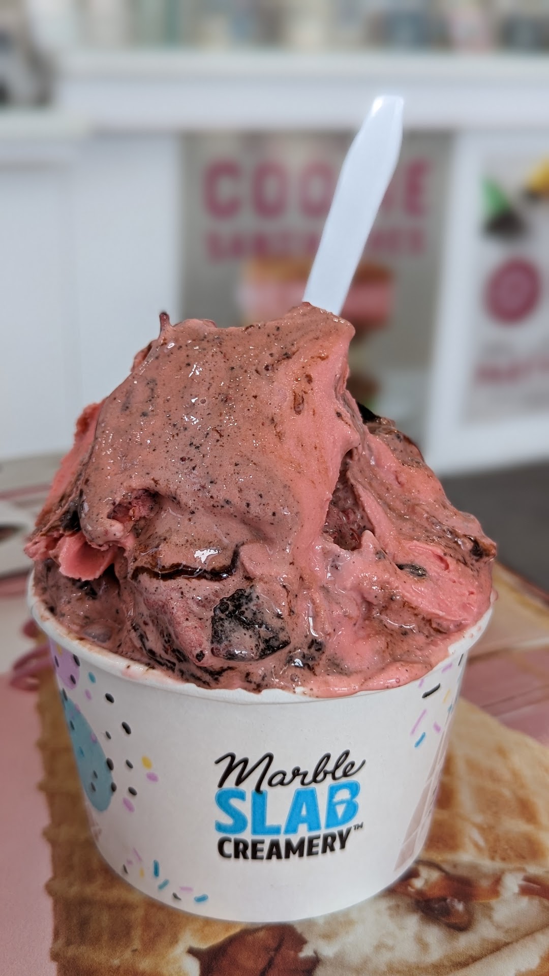 Read moreI am truly surprised to see so many negative reviews for this location. I popped by earlier today with my boyfriend just to grab some cups of ice cream and was impressed to see so many flavors available. The employee was patient as I asked to sample two of the flavors which I ended up ordering and my boyfriend also tried one. She quickly scooped our ice cream, inquired about topping choices, and helped us check out. We sat down to eat our ice cream and ended up eyeing the cookies & cream stuffed cookie - that’s right.. an oreo stuffed inside of a cookie - YUM. We ordered 4 since they are running a special where if you buy 3, you get 1 free. The place was clean from the counters to the tables and the floors. The staff was friendly & the ice cream was delicious. I had a scoop of coconut & a scoop of amaretto ice cream. My boyfriend had coconut & birthday cake & we both enjoyed it very much. We definitely wouldn’t mind...