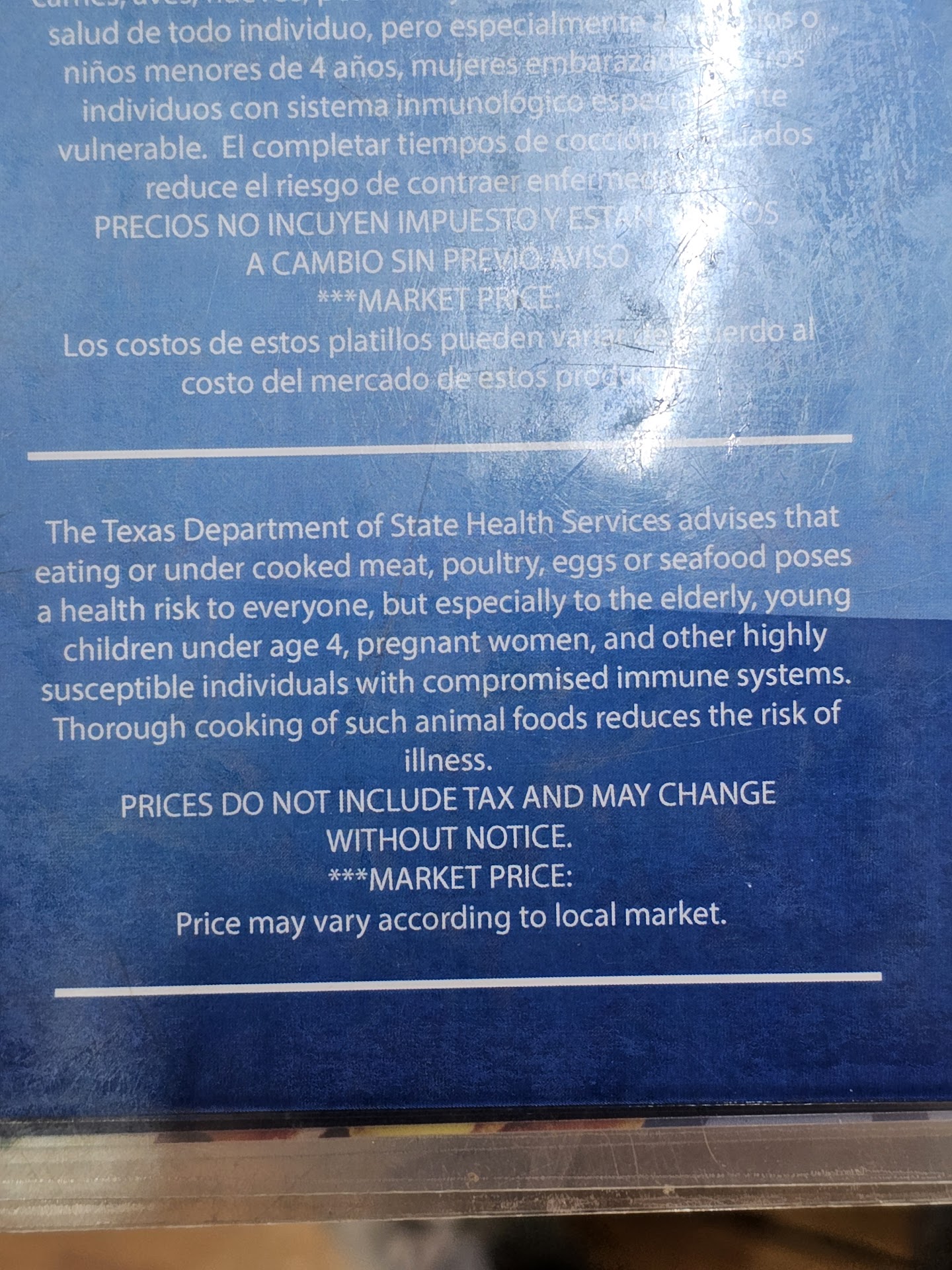 Also falls under false advertising laws of texas as you have market price on some item but not all and display a price on some items trying to lure and trick the customer. Even with this statement, you have to disclose it fully before customer orders. As it is not clear since their is in fact market price item and non market...
