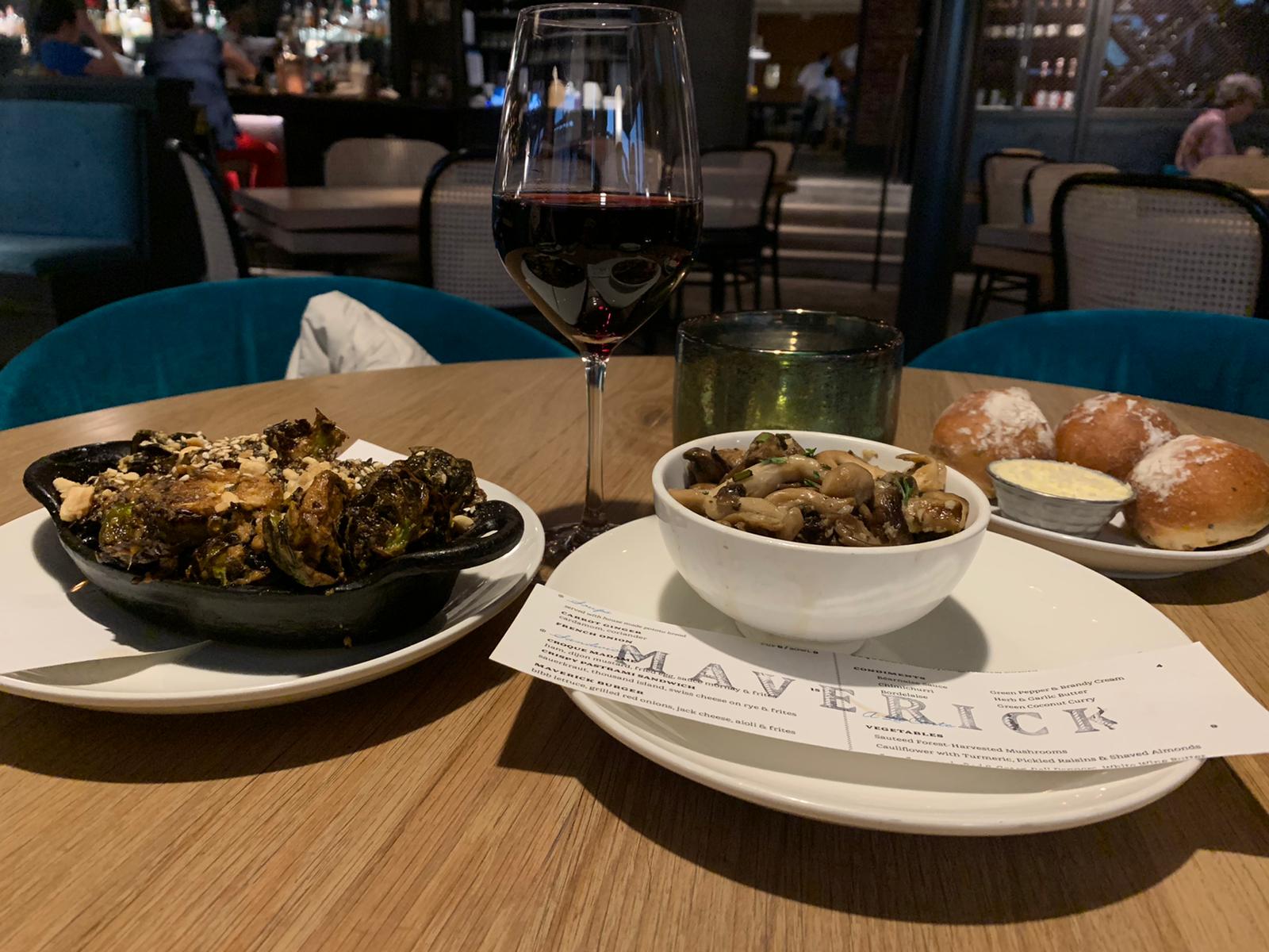 For the main course we ordered a Maverick burger and the (double) Duroc pork chop. The main courses don't come with sides, you order the sides separately. We opted to turn the side orders of mushrooms and brussel sprouts into our appetizers and since the portions are hearty (and we had some buttered bread), we still had plenty of both when the burger and pork chop arrived.