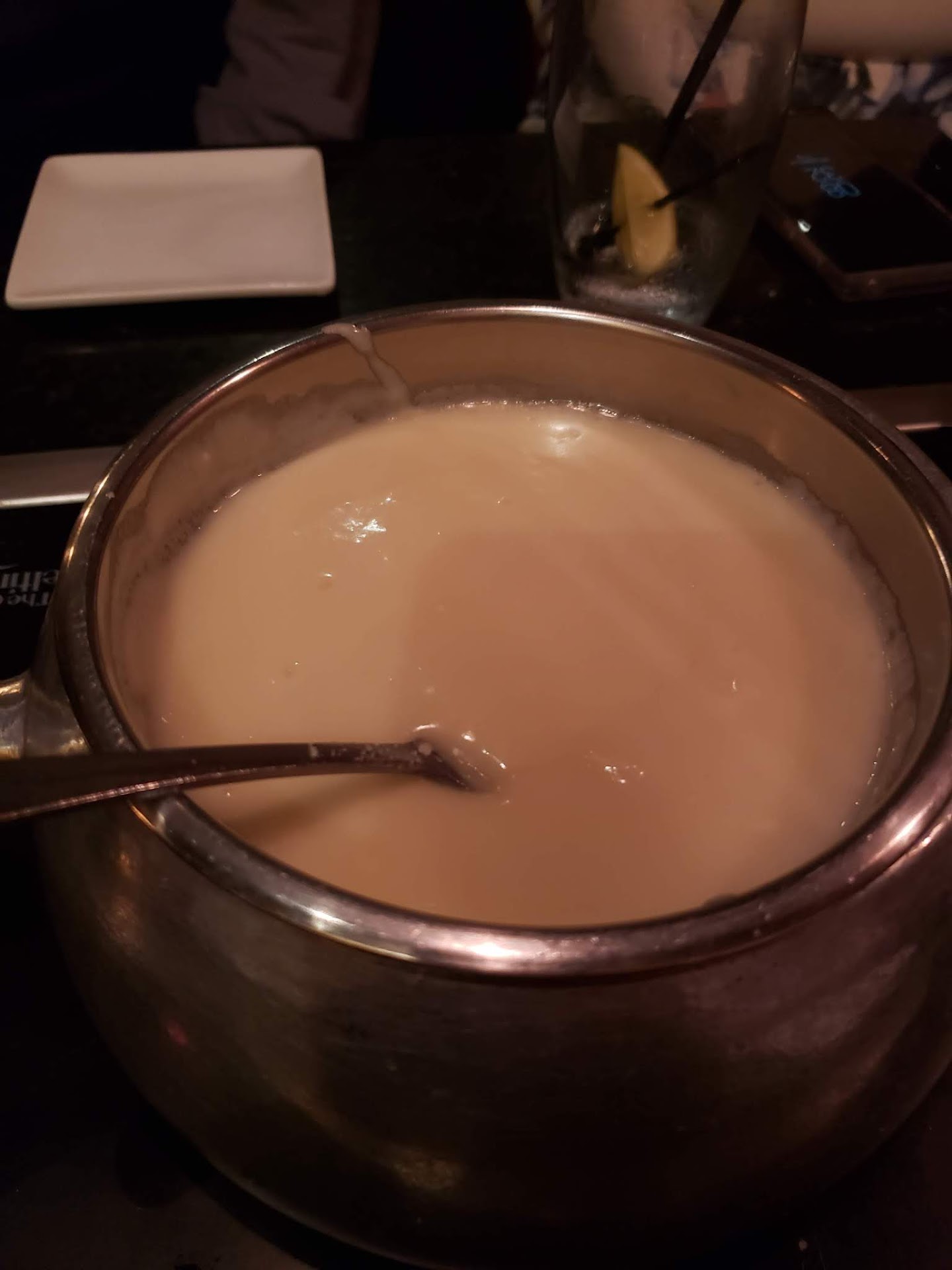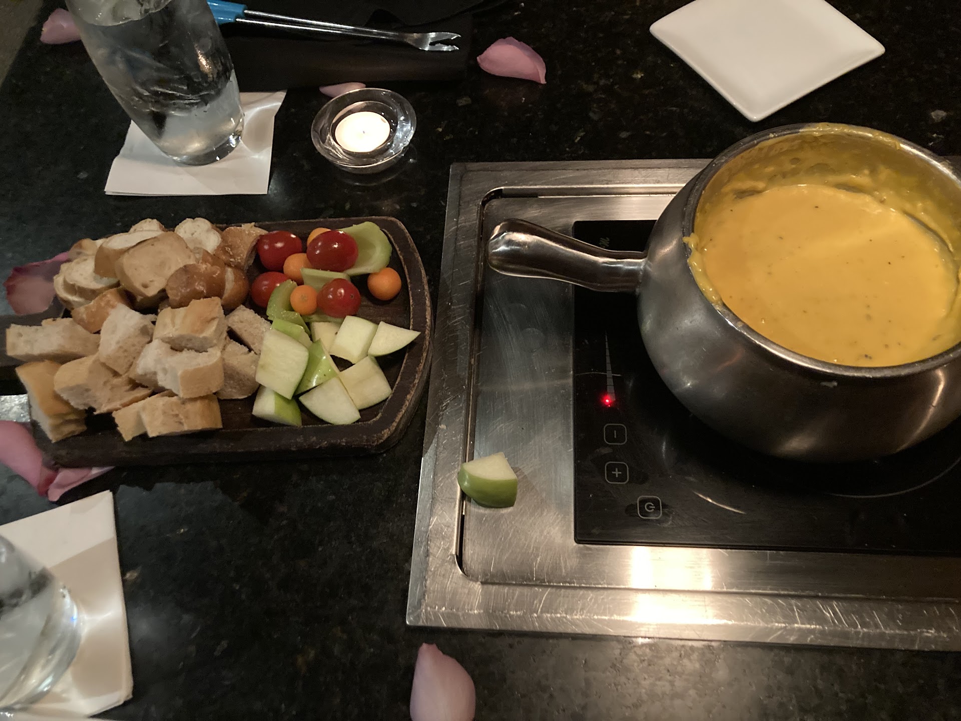 The entire experience is worth doing once if you never been to a fondue restaurant. I love this style of cooking but was afraid they did not have vegan options for my partner, mainly the cheese fondue. But they actually do, and itâs phenomenal! Vegan cheeses can often be hard to melt, or donât have a great consistency, but this was amazing. We only had the veggies and bread with it, but I thought thatâs was just right because we could really appreciate the cheese fondue flavor. We had the option to ask for more veggies or bread until the cheese ran out.