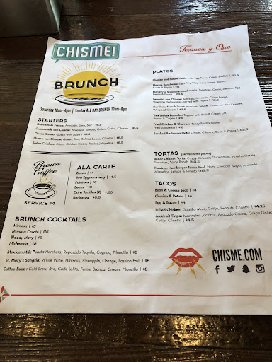 Read moreSan Antonio as a city provides locals and visitors to experience Mexican food and all of its wonderful regional diversity. While Chisme offers items that are traditionally Tex-Mex and some items could be categorized as "Mexican food", Chisme is more about the atmosphere and the potential to take cute botanical garden-looking photos with your friends at brunch than it is about the quality and flavors of the food. Opening a new-aged Mexican restaurant in San Antonio is a bold move since criticism or skepticism from locals who have been nourished by the hole-in-the-wall Mexican and Tex-Mex restaurants our parents ate at when they were kids, is highly likely. Chisme does however, try to cater to the heritage Tex-Mex, Mex food eaters like myself by incorporating dishes that were traditionally "food we ate because we were broke", such as papas and chorizo. My first and second time here, chorizo (in two different dishes) was super salty and annoyed me that I was paying $11+ dollars for something I feel like I could have made at home.