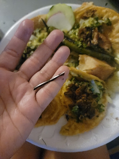 This place had always been good when me and my husband have gone but this time around was the worst. I was craving mini tacos so we went through the drive thru and ordered to go. When we got home I uncovered them and started adding the cilantro, salsa, ect.. well when I started to grab a taco I saw a hair right on top of the potato that was in the middle, so I'm thinking š¤ maybe it was mine so I pulled it off. It wasn't til when I started eating my second taco took a bite and pulled away from my mouth that there was another hair, long for that matter! And this hair seemed like it was cooked with the meat because it was mixed in. Right away I got sick to my stomach because the food had all this hair. Pissed me off actually because why the hell is their hair in food when they should be wearing hair nets when preparing or prepping food... right away went back and took it to them, they offered to make me something else or another plate but I refused and got my money back. They didn't seem to concern about it, as I walked away and I see them talking among themselves smiling. Well they just lost this...