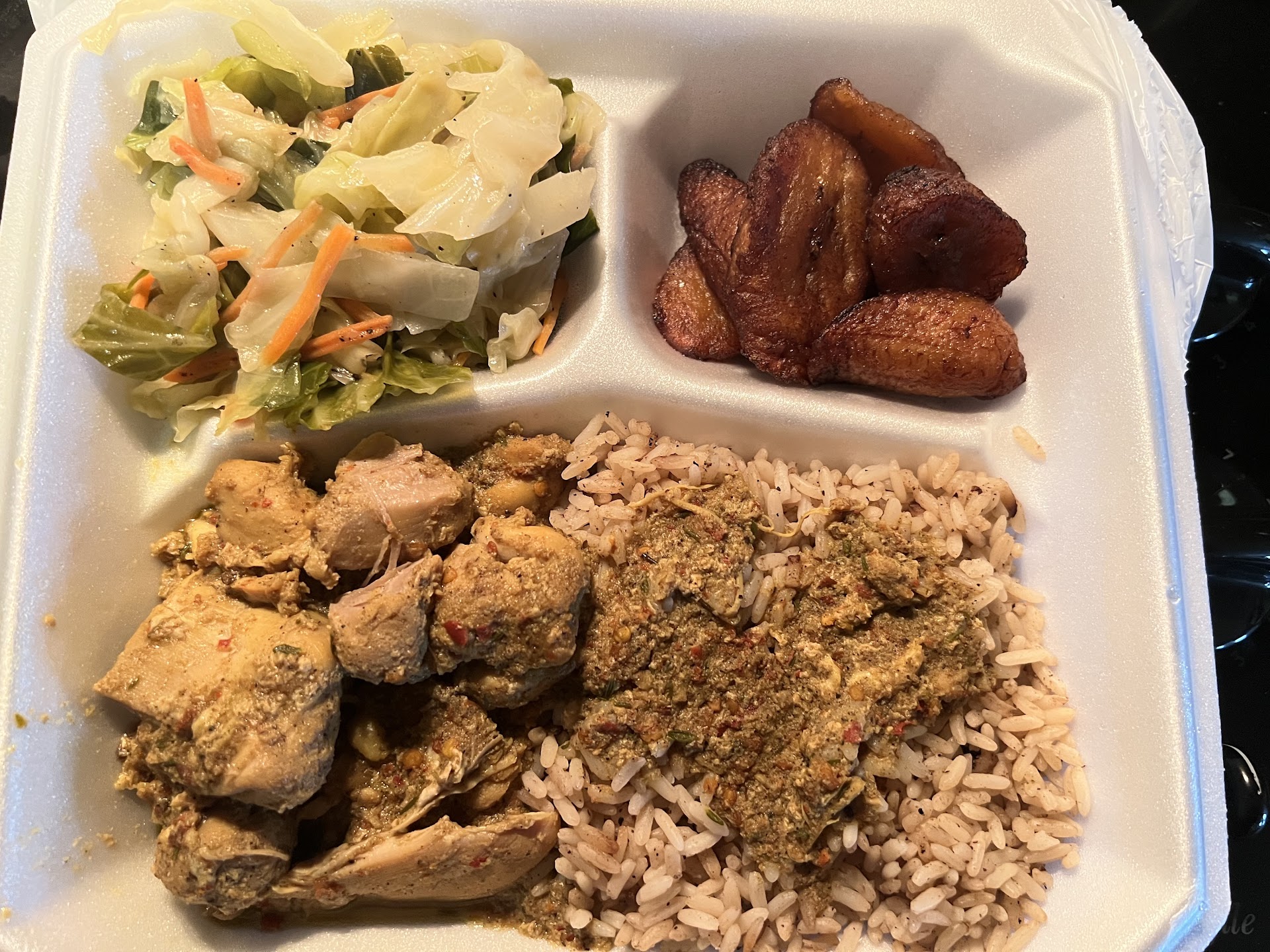 It was DELICIOUS! It was incredibly tender, sweet and spicy, and full of flavor. It came with coconut rice, cabbage, and some plantains. Let me tell you, I was having an experience while eating this chicken. I would definitely drive all the way back here, just for this chicken!
