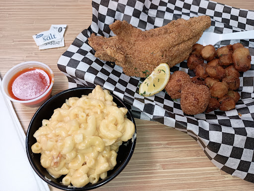 -Catfish plate with coleslaw and mac & cheese. The catfish was the star of our meal. The fillets were whole fillets. Big, fat, thick fillets that were seasoned and very lightly battered and fried. HOT and oh so juicy! I could eat that every day of the week! (The tartar sauce was a little thin/runny, but maybe because it wasnât in the fridge(?(.