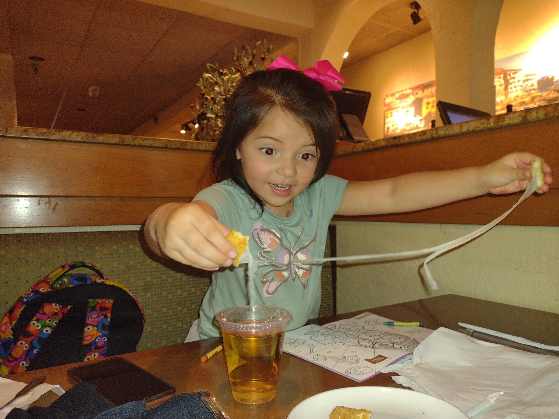 Read moreNever eating at this location again, and I cannot recommend it. Bad service aside, there are cleanliness issues. We watched the table next to us being cleared, and the guy first threw all the dishes and used glasses onto a tray, then took a rag from the tray that had just been splattered with leftover food and drink and used that rag to mop up the table, then he set THE SAME WINE GLASSES from the previous guest on the table to be used by the next guest. It made us seriously question the cleanliness of the entire restaurant. On top of that, our waiter was very rude, to the point that my sister and I wondered if we were being discriminated against. His service was so negligent-- for example, he asked if we knew what we wanted and we said yes, so he pulled up the menu on the little electronic console and told us to enter our orders on that and then he just walked away. Someone else brought us our food. He asked if we wanted more bread sticks and we said yes, but we never got them. When he finally brought us our drink refills, he told us to order dessert-- he didn't ask, he told us to. He then demanded three more times, as he was passing by our table to attend to other guests, that we get dessert. We had been planning to order some cake, but he made us not want to anymore. The last thing was, as we were leaving, several staff members were leaning on the host stand laughing and gossiping together, but no one said anything at all to us on our way out. I've been to many different Olive Garden locations before-- growing up it was one of my grandparents' favorite places to take us on the weekends-- but I have never seen such horrible service at any Olive...
