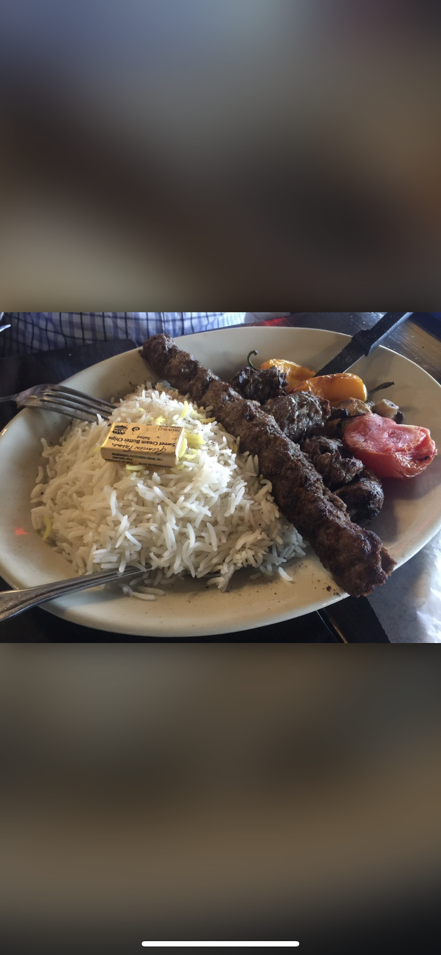 Read moreFood: 2/5 Seevice: 4/5 We came in on a Friday around 4 pm and the place was pretty empty. It was cool outside, but they still had the fans on so we asked the waiter (a very nice guy) if they could turn them off and he spoke to his manager and they eventually turned them off. They started us off with fresh out of the oven naan and zaatar. The naan was very good, but the zaatar and oil were very bitter. I've never had zaatar that I disliked as much as this one (and I've had plenty of zaatar.) Next we ordered : the kashke bademjoon dip, falaffel, a gyro plate, a chicken shawarma plate, the pasha plate, and I ordered a koobideh plate (I substituted one of the koobideh skewers with a lamb kabob skewer.) I also asked for cranberry rice instead of the lentil rice. The eggplant dip was not good at all. The garlic had a very bitter and off-putting flavor. We've had the same dish at a Persian restaurant in Houston so we had a pretty good idea of how the dish should taste. The falaffel were very good. They were fluffy, crunchy, and very flavorful. They were definitely our favorite dish of the evening. The gyro plate was ok, the Pasha plate was good, the shawarma was also good, but the Hummus had absolutely no flavor. No salt, lemon juice, tahini, or garlic. It felt like ground chickpeas and some water to loosen it up. The beef koobideh was ok, I expected more flavor, but the biggest disappointment to me was the lamb. I expected a tender, flavorful, moist mouthful but what I got instead was a dry, tough, chewy piece of meat. We ended up paying around $75 for the meal (we also got some tea which was $4 for 4 people.) I was charged $16.48 for my dish (so I was basically charged $5.48 for a skewer of dry lamb.) The rice was pretty bland, too. It was definitely in need of some salt. The worst part, however, was that I asked for some lemon and cilantro and believe it or not I was charged for the cilantro! It was only $1, but the idea of getting charged for a garnish is pretty ridiculous to me. Honestly, I wouldn't go out of my way to eat here because the food was pretty...