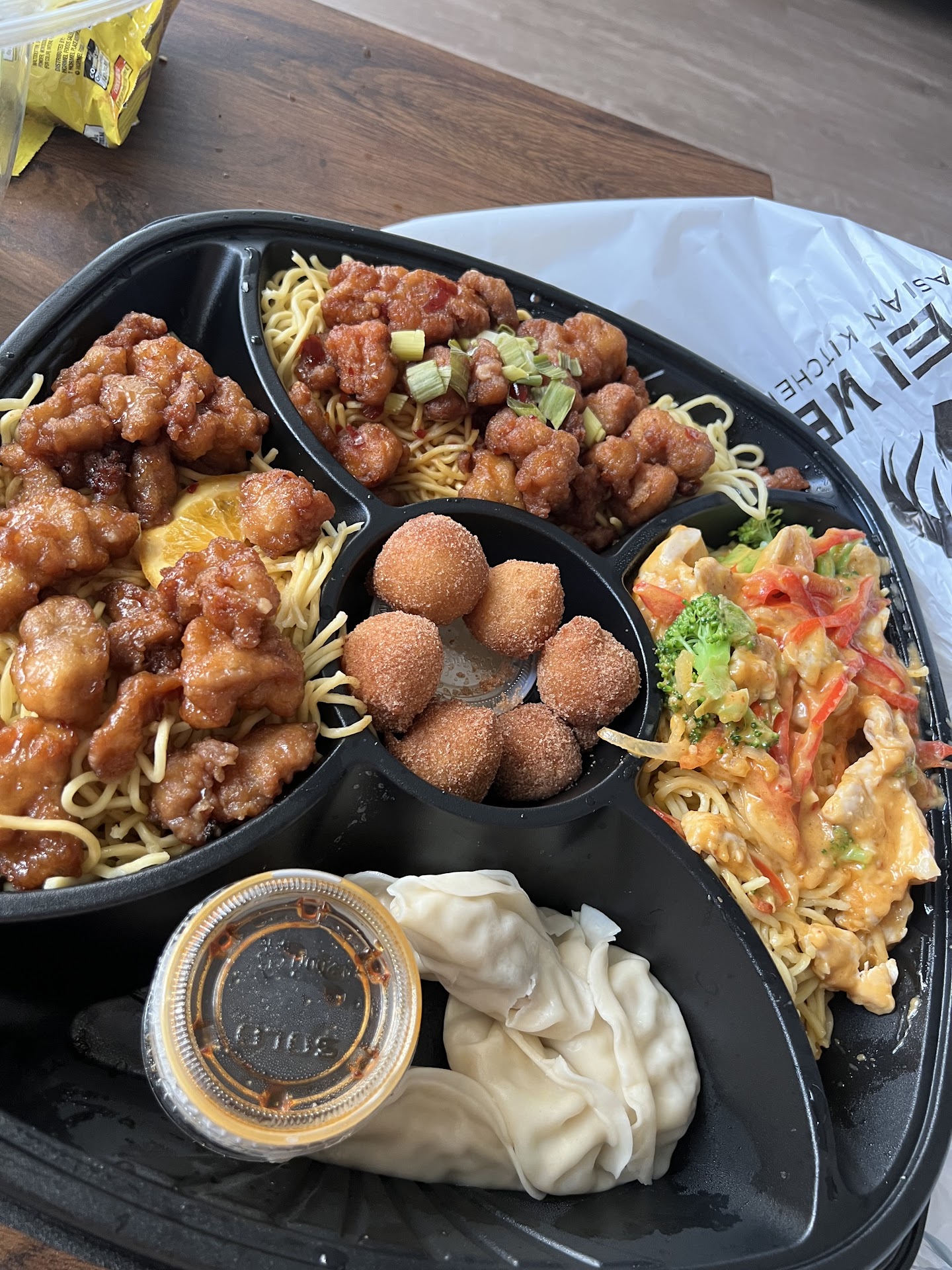 I found the hot and sour soup to be especially hearty. It has a thick, dark, broth with plenty of tofu squares and sprouts and veggies. I was also very happy with the beef broccoli. It has super tender beef with a slightly sweet and savory sauce. My daughter loved her sweet bourbon chicken.