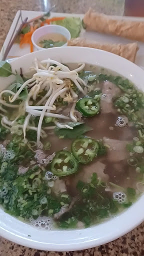 Read moreLocation is easy to access, right off 1604 and Braun. Clean interior, service was okay. We showed up when it was completely void of any customers, but two more tables filled after we ordered food. Egg rolls were okay. I wouldn't say the worst, but definitely okay at best. Innards of the egg rolls were a pasty consistency, but outside was crispy. Ordered the original beef pho (P1 on the menu). Large bowl with tons of broth. Was supposed to have beef tendons, but there were none. Beef had pre-cooked and re-heated texture. All other beef pho I have had in the past has come with the tendons and raw thin beef slices in boiled broth, so the beef cooks in the broth once placed in it. It was okay. I don't think I would come back here though. There are better places for the same price. Soft drinks are served as a can and...