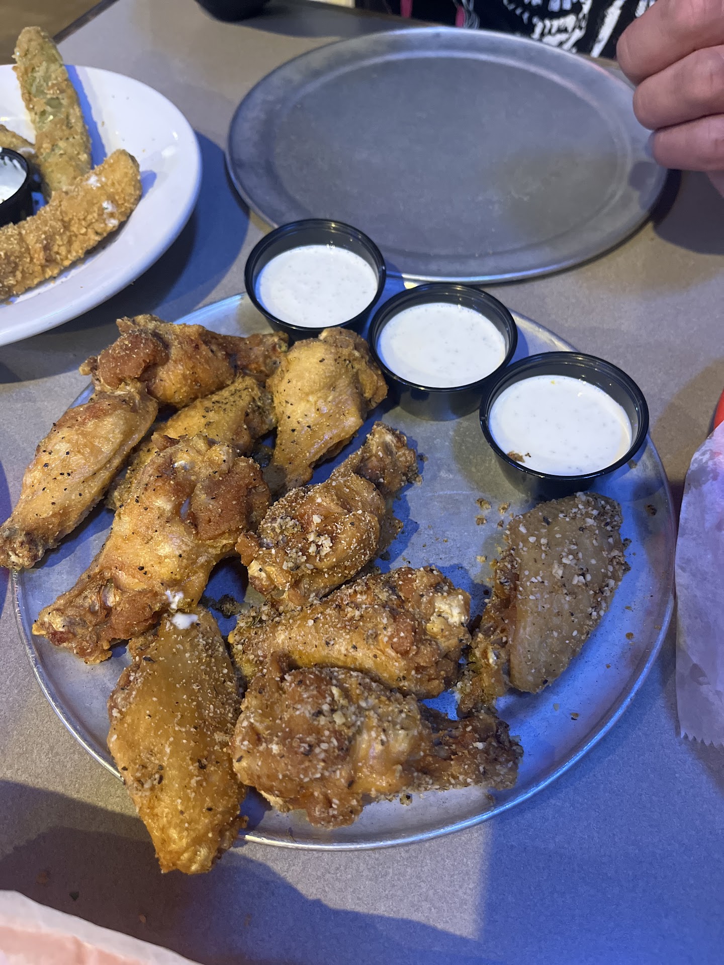 Read moreMy hubby and I wanted to try a new spot. I had my eye on this place but unfortunately it did not live up to the hype. We walked in and were greeted by two girls. One named Alyssa that stood out to me because she was super friendly and all smiles! We were seated immediately. We were assigned our server and she was nice but not very attentive. We were asked what drinks we wanted (I ordered a coke & my husband a beer) and appetizers to start. We got our drinks shortly after and then placed our order for our meal. We ordered the 10 piece wing combo with tater tots. We waited so long for our appetizers. We ordered the fried cheese & fried pickles. We waited a good 20 minutes and then the server came up and asked us if we had received our appetizers which we kindly said no. Another 5 minutes passed and they brought us our appetizers. They looked hot and fresh! We were getting low on drinks and weren’t asked if we wanted refills. 6 minutes into eating our appetizers our food came out. My husband was irritated because we didn’t get to enjoy our appetizers since they took so long bringing them out. We tried finishing them but our meal was getting cold. Our server passed by and my husband had to wave her down to ask for another drink (beer) she said she would bring that out shortly. I tried making the negative points of our visit into positive ones but then it got worse. My husband went to use the restroom and came out and explained that a staff member had finished using the restroom and walked out without washing his hands. I was grossed out about that. If I’m being honest the food was good. The wings were a bit dried out and not as pleasant as we hoped but they were hot and the appetizers were filling! We never got the second beer that my husband had waved down the server about. I never got a refill on my coke nor were we ever checked up on or asked if we wanted refills. Nobody really passed our table at all and it seemed like our server had disappeared. We got up and walked over to the counter to pay. We ended up realizing we were charged for a drink we never received (a beer) We spent $52 here. We definitely won’t be back to this location and it sucks because we really wanted to...