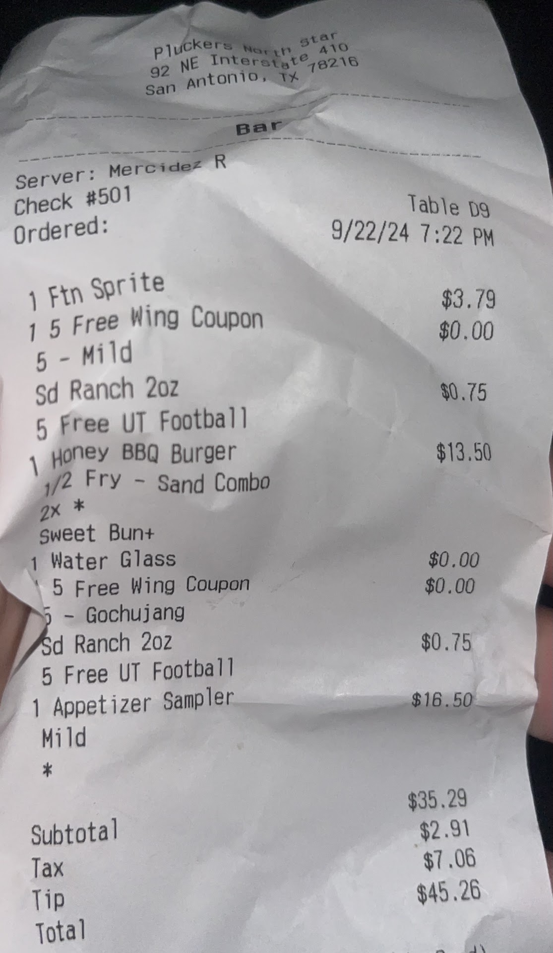 I rarely write bad reviews- check my yelp history. Pluckers used to be amazing- a little slice of heaven, a reminder of home (as im from Austin and would frequently visit the round rock location back when there was only 3 locations). Pluckers was always something to brag about to people outside of Austin. They served huge delicious wings and hot food every time. Great vibes, great customer service and owners who cared. In recent years, each time I visit a pluckers my expectations lower. The wings get smaller, the food is served stale and lukewarm (fries particularly) and customer service continues to get worse to even the point of now managers and GMs not giving a pluck. My most recent visit involved an argument with a hostess- A HOSTESS! The #1 person that is suppose to welcome you and have amazing customer service. She sets the tone of the guest experience. I was notified that my table was "almost ready" at 6:29. By the time I made it to the host stand at 6:33, I was told my table was given away. When I asked why she said they remove you from the waitlist after 5 minutes- which I completely understand but I only took 4 minutes getting to the host stand. She continued to say "we remove you after 5 minutes". I had also received a second text at 6:32 that said the same thing: my table was "almost ready". I'm at the host stand at 6:33. by both time stamps I'm at the host stand within 5 minutes. Once she counted herself, She then decided to change her response to : "we remove people after 3-5 minutes". Wth?! You just argued with me about not being here within 5 minutes until you realized I was and now the policy has all of a sudden changed? I ask for a manager and the manager proceeds to say the exact same thing the hostess says: "5 minutes". Okay now im trying to get a second person to do basic math and realize I was there before 5 minutes. She switches her answer up too once she realizes I was there at the 3-4 min mark. I ask for a GM. The GM looks at me and doesn't say anything except "your table is being cleaned off now" in a sort of "what do you want me to do" annoyed manner.