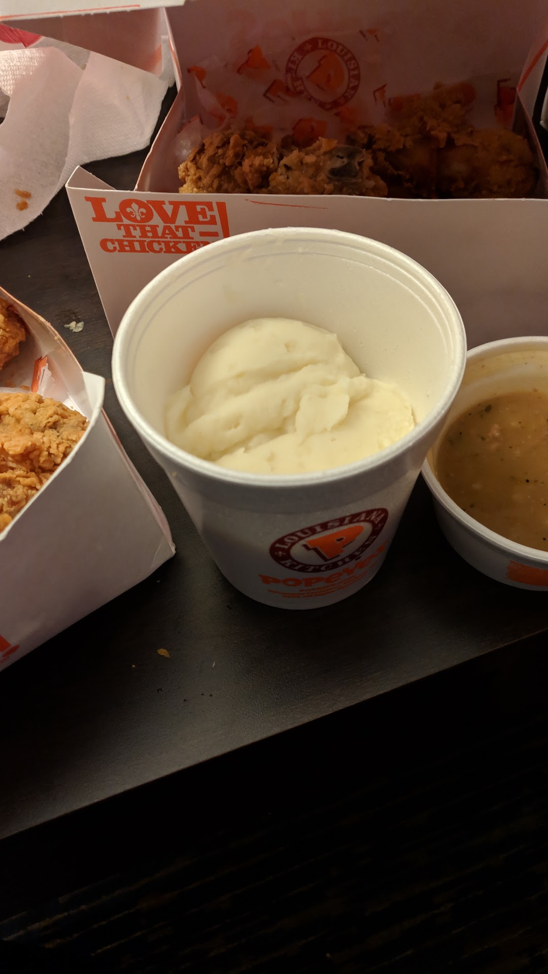 Read moreI waited in a long line in the drive-thru on my lunch break, approximately 20 minutes before reaching the window, which I was fine with, due to the current storm that was happening. I understand that people want to get out of their cars and get soaked while trying to get their foods ( the winds were really high, it was hailing, and raining very hard). When I get to the window, I paid and the lady asked me to pull forward. I declined advising her that I did not wish to get soaked by opening my window in the uncovered parking lot during the crazy storm. Another lady came and asked, I declined again, giving the same explaination. She said the other cars are ready and yours is not. I still declined. Then a gentleman, in a blue button up came to the window, demanding that I pull up since my food was not ready. I again declined dating that I don't want to get soaked so I would wait for my food at the window. After all, I'm ordering the current LTO which from my understanding she be available on hand, anyway since I only asked for the 3 piece. I'm sure the mashed potatoes side was ready so I assume that I was holding in the tenders. Not one was this relayed to me. No one gave me an approximate hold time and again, I was on my lunch break. Anyway the man in the blue shirt proceeds to tell me either pull up or get a refund. By now it's been an additional 4-5 minutes and by then they could've made the tenders and handed them out the window. So I waited my whole lunch break for food only to be told that I either have to go back to work completely soaked or have no lunch at all. I've loved Popeye's all my life. It's always been my favorite fast food place since I was 3 yrs old and now 30 years later I receive the absolute worst customer service that I have received in my life from ANYWHERE. Three people standing all bunched up in the drive-thru window giving me dirty looks made me feel seriously uncomfortable so when the man said, "gimme your card", I gave it to him and had to go without any lunch at all since I was in their drive-thru the entire duration of my lunch period. I will never go back to this Popeyes again. I submitted my complaint to corporate hoping to at least get a call from the manager...