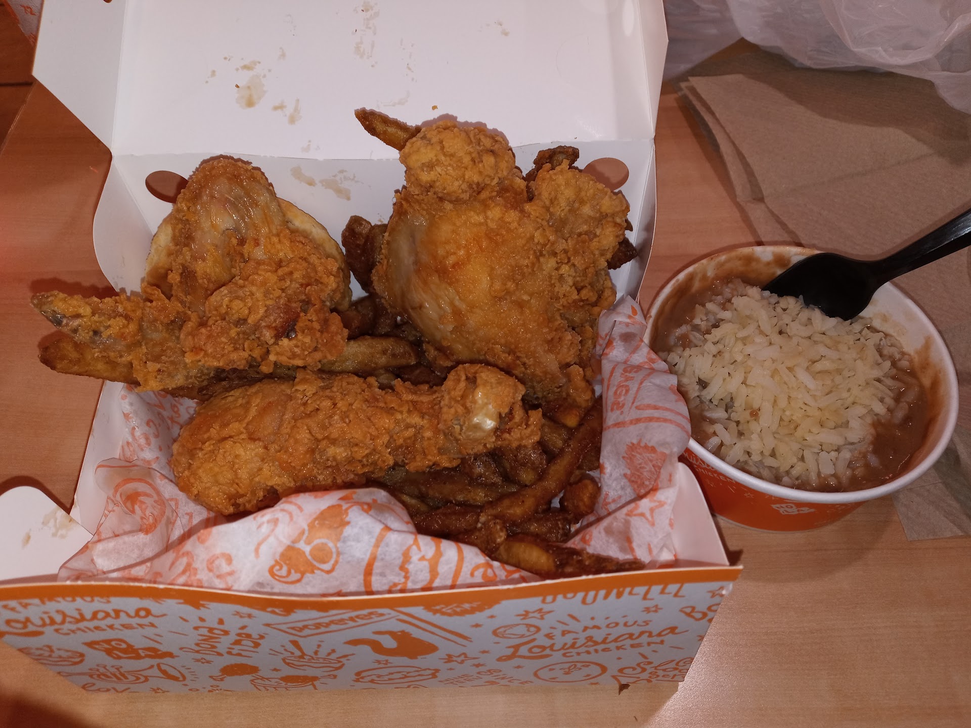 Me and a friend stopped in to eat a late dinner after seeing a movie. I ordered the 3 piece classic chicken combo with Cajun fries and red beans and rice. Included in the combo a biscuit and small drink. My friend ordered the 5 piece classic chicken tenders combo with 2 regular mashed potatoes which came with biscuit and small drink. One female staff worker from Popeyes was on her break when we arrived and placed our orders. We waited for our food for over 30 minutes. I wanted to go and inquire about our meals, but my friend was scared that if we were to say something it would lead to something bad. The cook and the guy that took our order stared at us. Never once asking if they had given us our order? It wasn't until the girl that was on break asked if we had gotten our order? It took a bit longer until we finally got our food. I was very disappointed with the expedition of our food. The quality of the size of the chicken and the fries. The chicken pieces are small. Not much meat in the chicken. As for the taste? It's good. I won't lie. But for the price of the combo there is barely any meat on the bones. The fries were not fresh. They looked like they had been reheated more than once. The red beans and rice was delicious. The biscuits were so good. Soft on the inside and perfect with every bite. I did have to complain about the size of the pieces that were in my order. I was informed that unfortunately that was the size of all the pieces of chicken that was being sold. How unfortunate. I would like to recognize the young woman who was very helpful and kind. Lydia Lopez, was the young woman on break when we arrived. She did her best to resolve the issue of our wait time of our order. Had the size of the chicken been better I would have given a high score. I am generous by giving 3 stars. If it weren't for the crispiness of the coating on the chicken and the taste I would have given it 2 stars. And had it not been for Lydia Lopez I would have given Service 1 star. As for the interior, it was well maintained. Both the eating area and bathroom were clean. Although, there wasn't any ice at the fountain drinks, no napkins, salt and pepper packets and ketchup. I have stopped in at this location before and have not had any issues before. It was very unfortunate that this time I had poor expedition of food. The portion size of the chicken is small and the fries were old. The saving grace was Lydia. A huge...