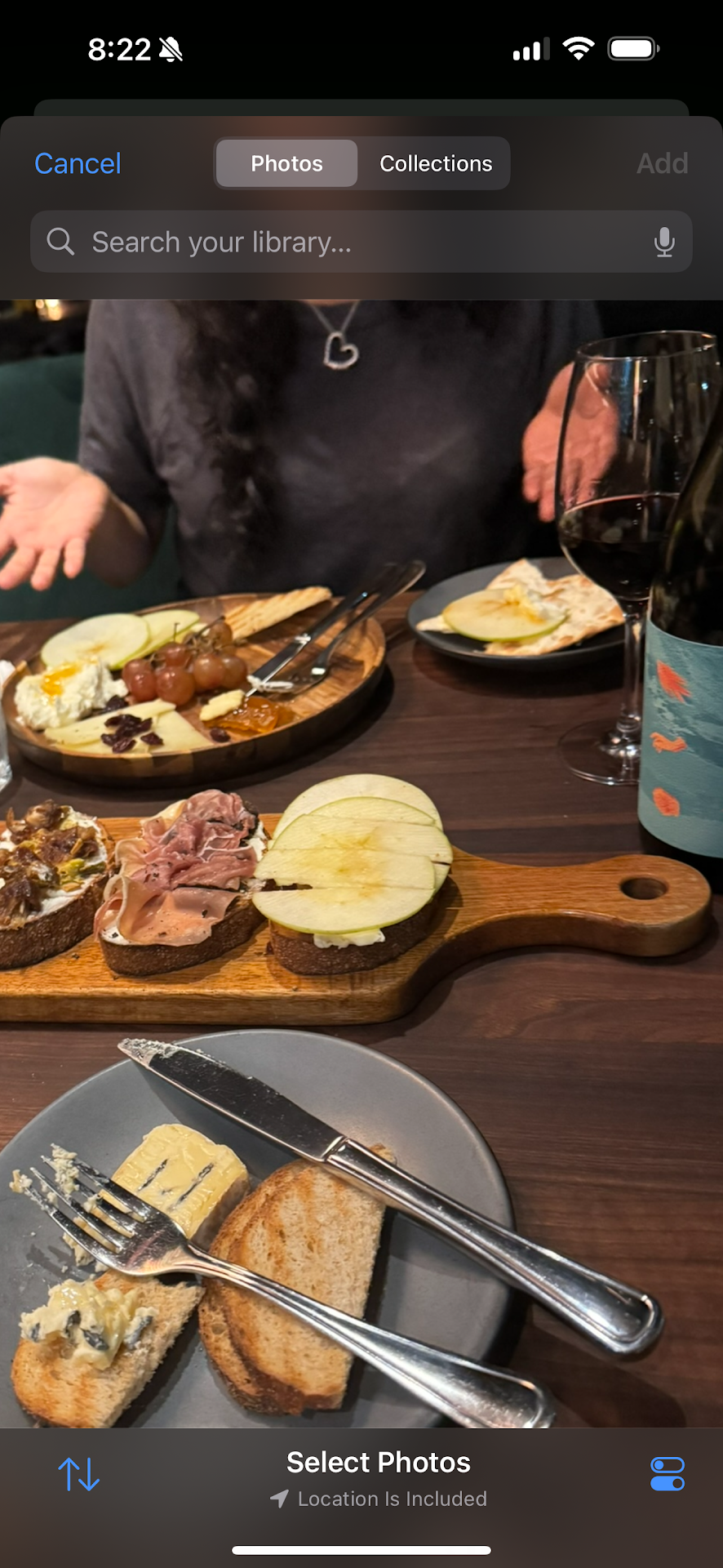 Read moreI would give the service zero stars if I could I hope you like being ignored if you want to eat here or brought the wrong food when you have allergies or taste other food on your food while you have allergies …. This is not the review I wanted to leave. I come here a lot. I have allergies. They’re usually pretty good. I talked to my friend from coming to the north side to coming to this location because I said it was better than the rim location last night. I was horribly wrong. After we were seated a party of three, we waited 20 minutes for somebody to come to the table, even just to get a cup of water we ordered our food in fear of them, not coming back again for a long time. I explained to them that I had allergies and ordered my food when everybody’s food came out they brought The wrong Board I explained to them that it was wrong and they argued with me so I read again what I had and asked them to be very careful. I have allergies.. Finally, after about 30 minutes, somebody finally remembered to bring our bottle so halfway through sitting there we finally got our bottle… Nobody ever refilled my husband’s water he doesn’t drink, and then finally my board came. My throat after I ate was it itchy and it was hard to swallow. I ate a piece of cheese off the cheeseboard that tasted like jalapeño, and one of my apples had a sesame seed on it so I know they did didn’t change their glove from her cheeseboard to my. Bruschetta. How frustrating we walked in there at 9:20 we did not get out until almost 11 o’clock. The girl in the red sweater told me that she was gonna get me a cork. I sat for another 20 minutes after I paid my bill and tipped her and she never brought me a cork. I had to get up and ask somebody to get me one. How horrible I will be driving to Cheese Pl. at the rim from now on I would rather pay high dollar for my wine and cheese boards then deal with this mockery I really hope they didn’t treat me that way because I’m tattooed because being a chef and a restaurant owner it’s very disappointing Attached is a photo of when we finally got our wine...