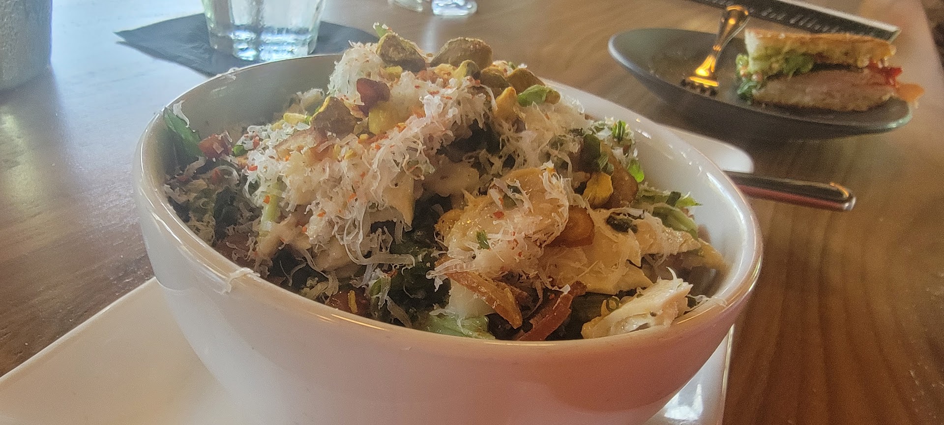 It is hit or miss with table service. Often have to wait for a server. Food is good. Soup is never hot. We send it back to have it reheated every time. Every time! Desserts are excellent. Panini selection is good, but quality varies. For example, the Western has barely any filling, but the tuna sandwich is fine. Twice we've ordered the western and we always have to question the server about where the chicken is. This place could and should be better. It's just not quite there yet. Parking is convenient. Wine list and pricing is excellent. Patio is spacious with plenty of shade and fans. Service needs work and the kitchen lacks consistency. Otherwise good place. Update 9/21/25. Service is still off. The issue is that you do not get a dedicated server so the thought is that every server is there to assist. Great in thought, but very seldom does anyone actually stop at the table. For example, we order a bottle of wine and pitcher of beer without server, and then watched 3 servers hang out as our drinks remained @ the bar... unserved until we asked for them. The food continues to be inconsistent...sometimes good, sometimes almost there. The soup is never hot. We have ordered the French dip panini twice, and each time the authentic jus is served to the center of the table and never presented to the guest with the French dip. Tge Brussels spout salad has almost no Brussels Sprouts in it. When asked where they were, the server said they are finely shaved, however there were no shaved greens at all. Just spring mix. We ordered 3 bottles of wine from the list they gave us, but none of those wines were available . They said they had substitutions if we wanted those instead. Just really hit or miss more often a miss. If there was an interest from management or leadership this place could and should be better. Sadly, they are performing at the level they are interested in performing. UPDATE JAN 13, 2026. the service is just not good. There are long periods of time where there are no servers in the dining room. We waited 15 mins for one of the 4 servers to visit our table. We ordered drinks, and then waited. After waiting for 10 more mins another server took our drink order. 5 mins later 2 of everything showed up. We then had to flag down a server to place our brunch order because there were no servers on the floor. The food is inconsistent. One beef dip sandwich looked great. The other one had no aioli and half as much beef as the other one. Soup is never hot, the au jus for the sandwich was also cold. Just so much potential here, just always...