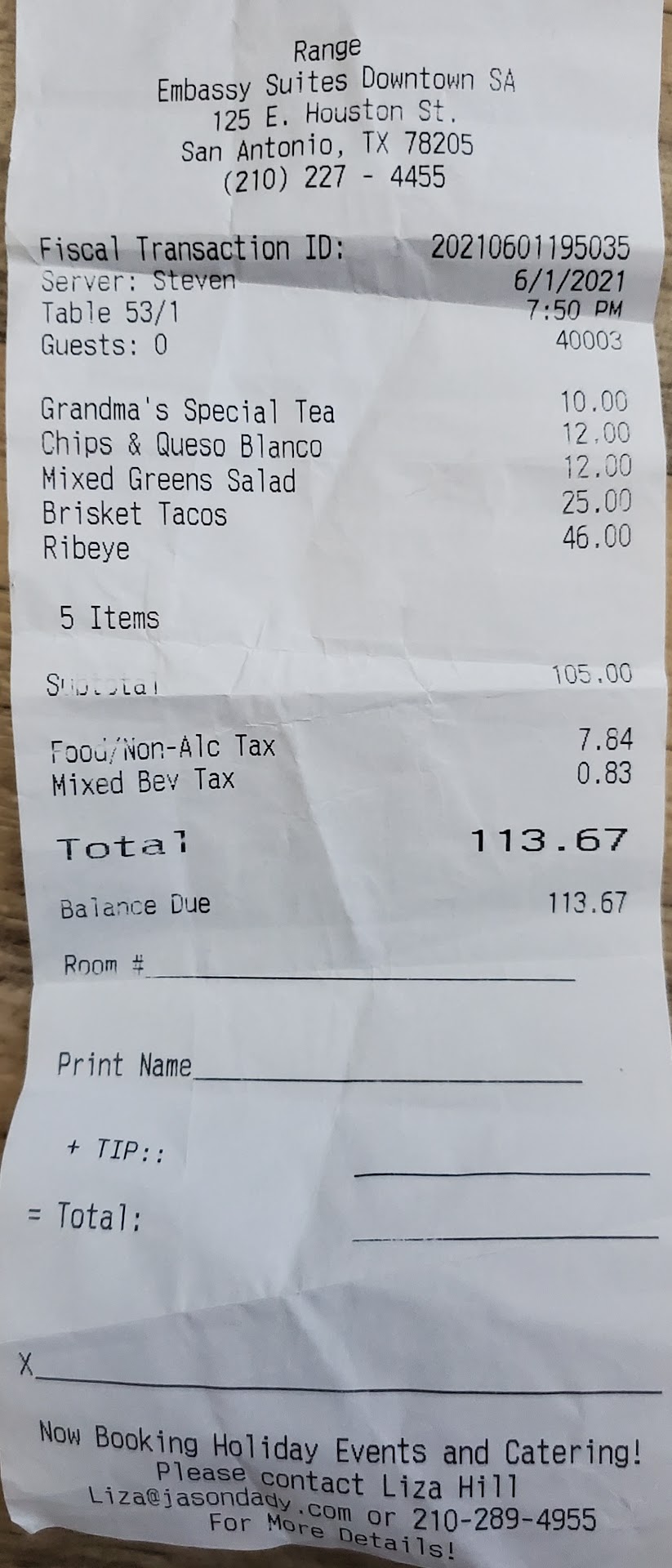 Having eaten at other Jason Dady restaurants I wasn’t certain what to expect from a chef who currently owns southern Italian, seafood, and barbeque restaurants, but was now trying his hand at a steakhouse. In typical Dady fashion, Range does not disappoint. Located in the Embassy Suites Hotel on the corner of Houston St. and Soledad in downtown San Antonio, Range overlooks the Riverwalk, and is near the theatre district (Majestic, Empire, etc.). Both the upstairs and downstairs are open areas, with an elaborate bar on the first floor and an open kitchen in the center of the second floor.