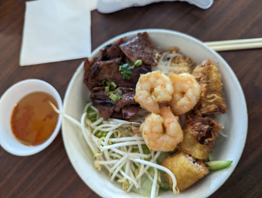 Ā Ā Ā Read moreAs a Vietnamese, I had expected more from a place named "Real" Pho, but was really disappointed. I had the combination vermicelli, it was decent: the grilled pork was tasty, the shrimp was battered and fried instead of grilled like other places, the one egg roll was tasty, the nuoc mam sauce was plain, with no chillies, garlic, carrots, or lime juice - I had to add Sriracha to give it some color. My husband had the Veggie pho with veggie broth: it was boiled veggies in water, no flavor at all, no pho spices or flavor, not even salt. We also ordered the meatball banh mi and a Cha Lua banh mi, which were the worst I've had in San Antonio: The bread was a regular bready hoagie although it was slightly toasted, it was still white and not a real french loaf that's fluffy on the inside and flaky crispy on the outside. There is no pate, no soy sauce, no pickled carrots and radish, there might have been a hint of mayo, and the cucumber slices were miniscule. The meatballs were bland, breaking apart, and had no tomato sauce (yes, Vietnamese meatball sandwiches also have a tomato sauce, but it's not like the American tomato sauce). The Cha Lua banh mi had 2 oblong chunks of dry Cha Lua (supposed to be soft and moist) instead of cut in thin deli style slices. It had whole peppercorns in there, which I did not like, although some might enjoy that kind of Cha Lua. The prices were also quite high for such foods, there are other higher quality Vietnamese restaurants having lower prices. The ambiance of the area was a bit hodgepodge, like it was renovated in small chunks, by different people with different design ideas (the floor tiles). The menus had the prices scribbled out, but no new prices were added, so you don't know how much anything costs. They also have handwritten phone numbers on them. It's all very...