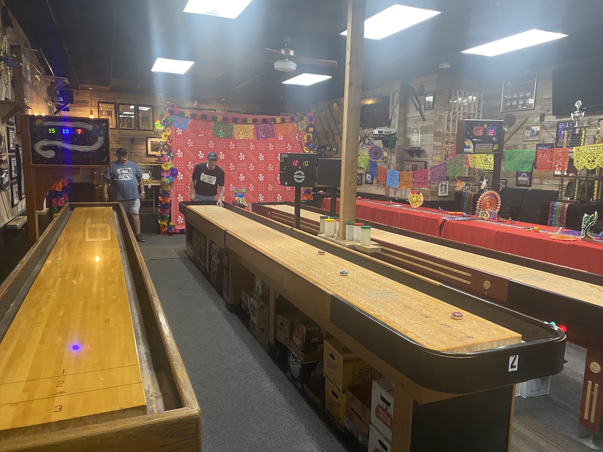 I absolutely love this place the owner has great specials as well as good food that also helps the calorie count. The people and atmosphere is light and friendly Miss hope is one of my favorite bartenders along with Darrell and the two girls that work on Friday nights when the place is packed. Plus you have to go see mr. cloud (DJ) and everyone who religiously shows up for karaoke on Saturday nights. I'm not kidding mr. Cloud literally has a group that follows him me being one of them as well. This is one of my favorite little neighborhood bars in town plus I can't get over there now open from 7 a.m. till 2 a.m. Serving breakfast at 7 a.m. Lunch and then dinner until 11 p.m. And did I tell you they have great specials... There's a couple different $2 beers on special every month which is awesome so if there is a new local beer you haven't tried and it's on the special bored for $2 or $3.25 ... That's when I always try them. They also have $1 Rookie kazi shots all day everyday!!!! They have five standard shuffleboard tables in the back area and every Wednesday they have shuffleboard League, they also have a pool table and 3 dart boards and I guarantee the breeziest and coziest patio, and I swear I've never seen that bar dirty, it is well kept and always clean!!! Again great & I do mean great place to hang out even bring the kids...