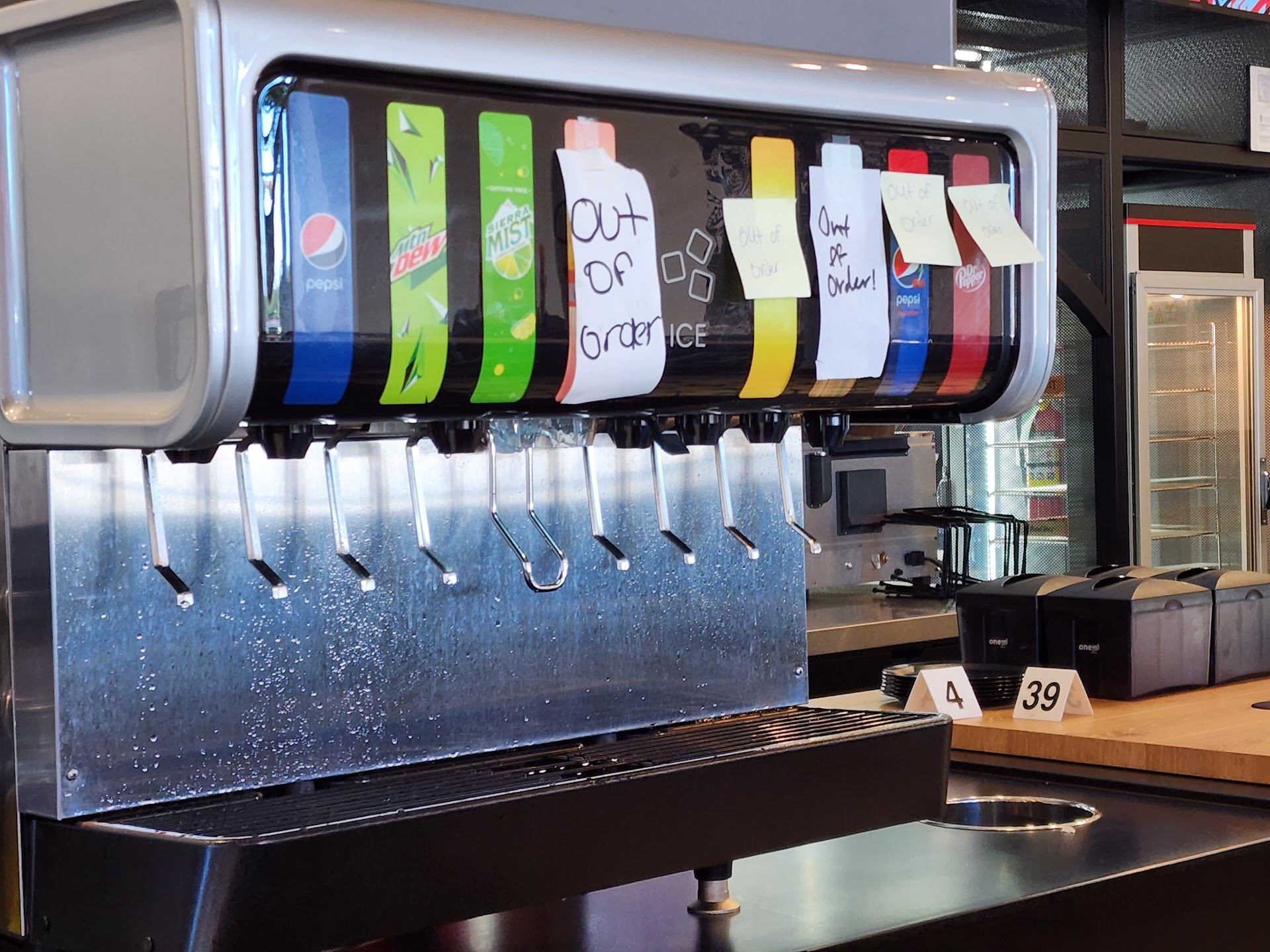 I walked in and waited in line to order which was no problem. I placed a to go order fot 2 medium pizzas, garlic twists, and a drink. This place is small. There is no room to wait for your order so I stood and waited. I went to fill my cup with soda and all but the Mountain Dew was out. Knowing this they continued selling fountain drinks. Bottled options were available but you had to purchase after you already purchased and found out for yourself the other was out. I let the guy behind the counter know all other options were out and he looked at me and walked off without saying a word. After about 15 minutes of waiting the cashier began telling customers there was going to be an hour wait. At that point I realized I should have asked how long of a wait it would be when I ordered. Even though there is a small outdoor area for people to sit and eat, there is still little room for many people to sit and eat there. I waited an hour and 20 min for my food. While I waited, I counted 5 people ask for refunds and leave because they got tired of waiting. I also watched a bunch of other families walk out before ordering due to theong wait times. While waiting, the manager walked our to the dining room to get some water out of the soda machine. A customer complained about only having 1 soda option and he was cluess about being out of soda. He then went into a rant about all of the issues they were having being forced to open a week too early before the team was trained and before they were properly stocked. Not really something customer's should hear after waiting suchong times for their food. I had noticed some boxes being put in the warmer for pick up orders after about an hour of waiting. I didn't think anything of it because I watched people come in and out picking up orders, and people that ordered before me were still waiting. I finally got tired of waiting so I walked up to the counter to ask about my order. That's when I saw my name and table tent number on the box. Those box were sitting in thw warmer 20 min before I saw them. I guess if you have to go orders, you have to check yourself because they don't call out orders. Even though the pizzas were there, my garlic twists were not. The cashier did offer to yell back and ask them to make some. I wasn't about to wait longer. I wasn't even offered a refund for the garlic twists. I had to ask for my refund. Even after all of that, the food was still good. I will be back but will wait a few months until things settle down. Hopefully, by then, they will get their stuff together.