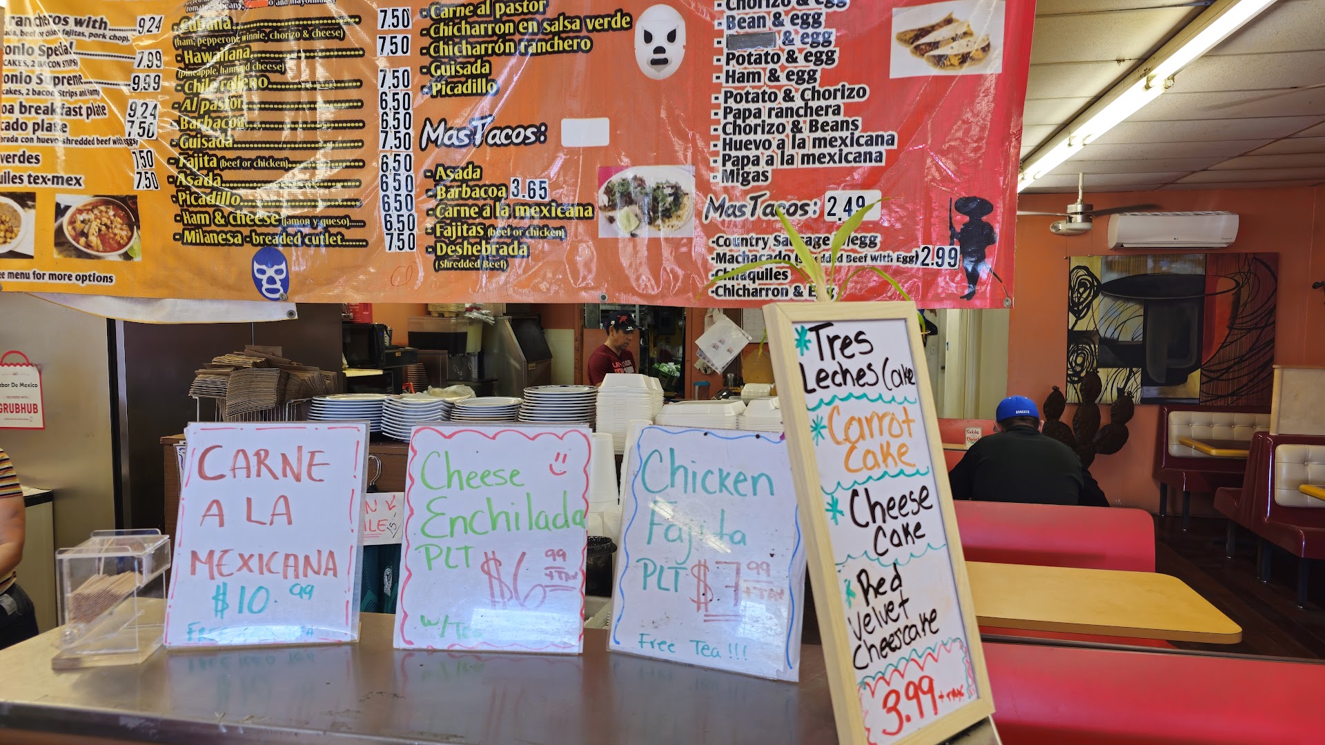 I figure, oh well, I'll eat them anyway. As soon as I tasted the beans, I knew I was not going to be able to finish these. They were bad. I don't know why, maybe old, who knows. I left everything, coffee, tacos, everything. I was charged anyway. Avoid this place...