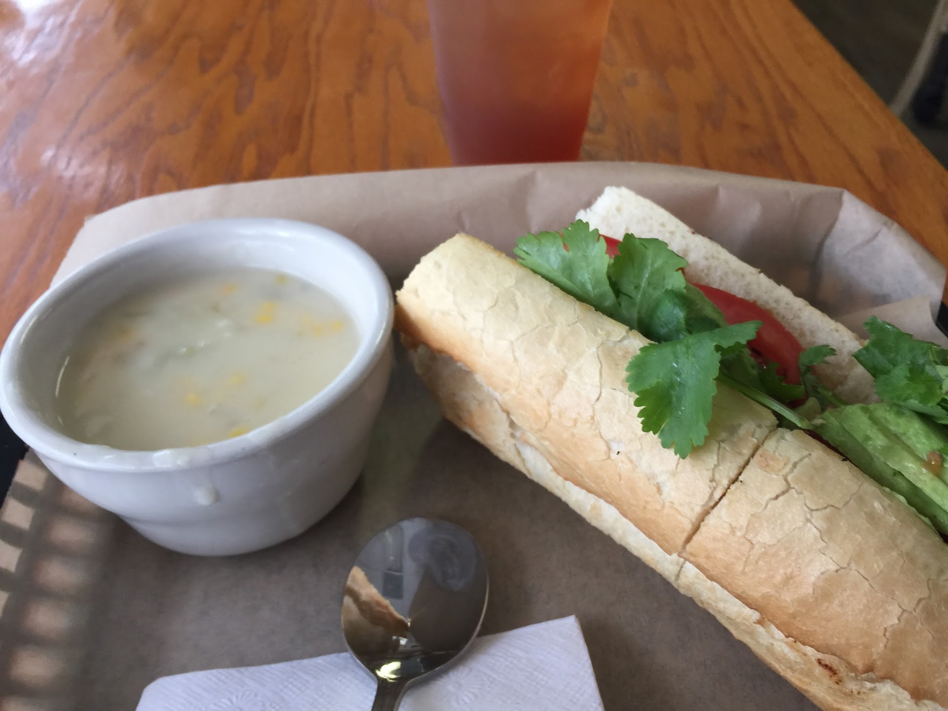 Read moreno pics because I was too hungry to bother We stopped by Sandwich de Paris (SDP) after a medical appointment and were pleasantly surprised with our experience. The cafe is located off of Louis Pasteur in the medical center area. There's plenty of parking, though the parking lot did seem crowded during the lunch hour when we went. It seems like employees no longer bother to greet customers these days, so the hearty welcome we received—complete with a detailed explanation of the menu and specials—was a nice change of pace. Throughout our visit, the employee taking care of the front of the house cleaned, bussed tables, and engaged everyone who walked in or out of the restaurant, asking everyone how they enjoyed their food. The same employee took our order and was still courteous, personable, and authentically engaging. You could tell he enjoyed being there and assisting customers. My husband ordered the Tribbiani wrap, which was their special, with butternut squash soup. He devoured the wrap (loaded with three types of deli meat) and the soup in record time. He did say that the butternut squash soup tasted more like chicken stock than anything, but it may have been an ingredient he couldn't identify. He enjoyed it regardless. I ordered the tsukemono sandwich with a side salad dressed with balsamic vinaigrette. The grilled sirloin was tossed in a soy marinade and was tender and juicy. The meat was topped with tomato, cilantro, pickled veggies, red onion and aioli on a soft baguette. I asked for an additional cup of pickled veggies because I felt the sandwich needed some acidity to balance the sweetness of the marinade on the meat and the aioli. I would love to see the option to add thinly sliced jalapeños or maybe a kimchi option (though I know I'm venturing into another cuisine with that suggestion). Maybe add some heat in the form of chili sauce or toss the pickled veggies in nuoc cham to stay true to the overall vibe of the sandwich. The balsamic vinaigrette on my salad was too thick and sweet for my preference. I would prefer a thinner vinaigrette with more balsamic. It leaned more towards a ranch or Caesar dressing thickness and less towards a vinaigrette consistency. This hearty lunch for two (with bottles of TopoChico and Fanta) was around $30 with a tip. I highly recommend SDP if you're in the area, and even if you're not in the area, I recommend swinging by to check out their food. In a day when customer service and good food in a clean establishment are few and far between, this gem needs to be appreciated...
