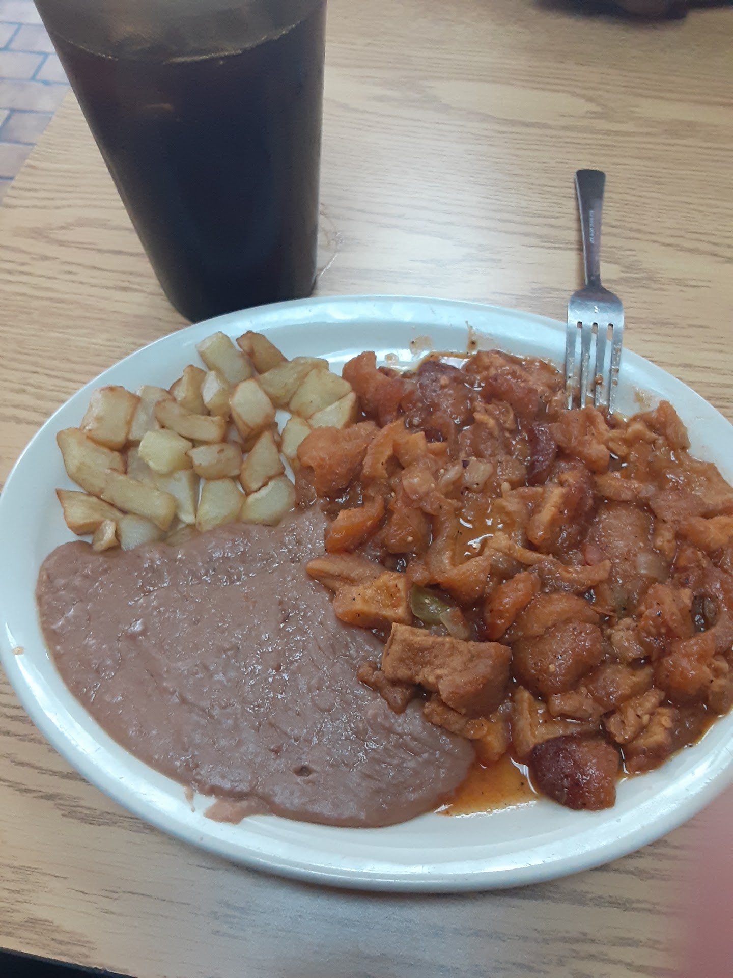 Just left there at 11:15 am. The waitress got my food order wrong. On the menu I pointed out what I wanted and it was a plate of chilliquies with refried beans and potatoes. The waitress came back with one taco instead of the plate I order. They even got my husband's order wrong, and he just order 2 tacos. We didnt have to wait that long. The restraunt was pretty dead. Well, it had a few people there, but it wasnt busy at all for them to make a mistake. Waitress constantly poured us coffee and tea. Flour tortillas was perfect. Nice and fluffy. My husband order country sausage taco ranchero. The taco was dried. Plus he ordered chicharron with Rachel mixed. Any way, I told my husband that doesn't look good. It's too red. My husband forced himself to eat it anyway. He's not the kind of person to complain. When the food is bad he won't go back to that place again. But, he regretted it. Because as soon as we got in our car he was complaining of stomach pains. Now, we are at home and he has this sensation of wanting to throw up. My plate had a lot of white cheese, and hot sauce, but the hot sauce in the dish taste too much like tomatoes sauce. I didn't get to eat the food because I was quickly becoming nauseous. We had good service from the other waitress, but that was it. We did leave a tip considering our 2nd waitress was good, and we felt it wasn't her fault for the screw up of the 1st waitress, and the cook. But, we had our bad experience there. This was our 1st time there, also. Sadly, but we will not be going there again. By all means please don't let us stop you for trying their food. Coffee is good, tea is good. , but you have to try it once and experience it yourself. People have different taste. We should of known better from we saw the restraunt being almost dead. When business is slow and hardly any customers that usually means the food isn't that good or service is not that great. But, we tried it, and it failed us. I told my husband that's why you are suppose to pray for your food. Because just in case the cook mishandles your food and cross contaminate it. Jesus will not let anything harm you. That's why I didn't get sick like my husband. Lesson learned. Best of luck for those that tried it. Remember, these employees are human and they make mistakes, maybe the cook was having a bad morning....
