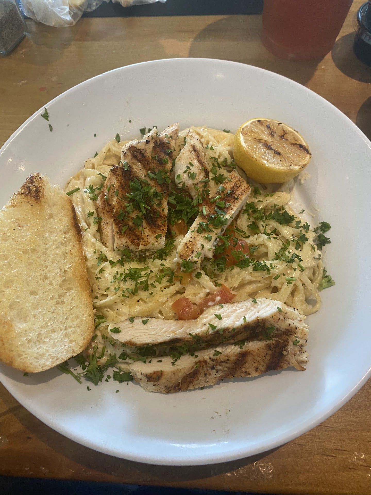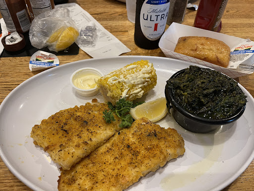 Food: Our Coconut Shrimp was very oily, but we ate it anyways. It was so oily however that I began feeling a little nauseated after eating it. Our buzzer went off a minute into the appetizer. I ordered Southern Style Fried Catfish and it was so oily I could only eat about two bites. Oil was pooling in the bottom of the plate. I was only able to eat the baked potato, which was good as far as potatos go. My husbands food was grilled but even it was not very good. It was like they glazed it with oil from the fryer. He ate it but said it was not something he would ever come back for. I think they need to change the oil and increase the temp on the fryer to prevent it from absorbing so much oil.