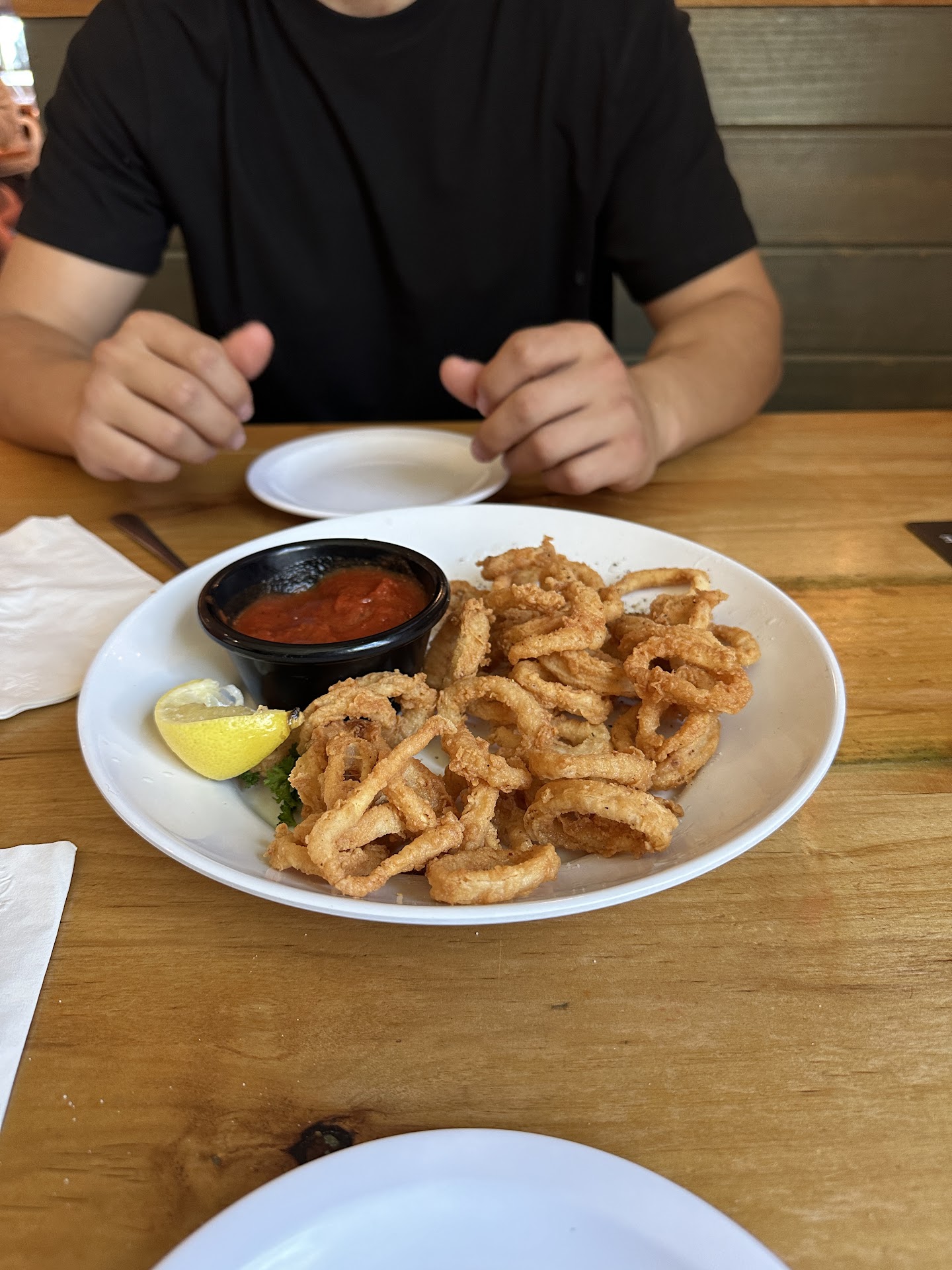 Service: The manager came by once to check on us and I had to tell him about the food. He was very kind but seemed pretty shocked and said he had worked there for a year and never had heard anyone complain. But when I showed him the oil on the bottom of the plate he agreed that it was too oily. We talked for a moment and agreed that he should check to temp on the fryer. He issued us a refund for my part of the meal and gave me a coupon for a free appetizer. I appreciated his professional response to my complaint.