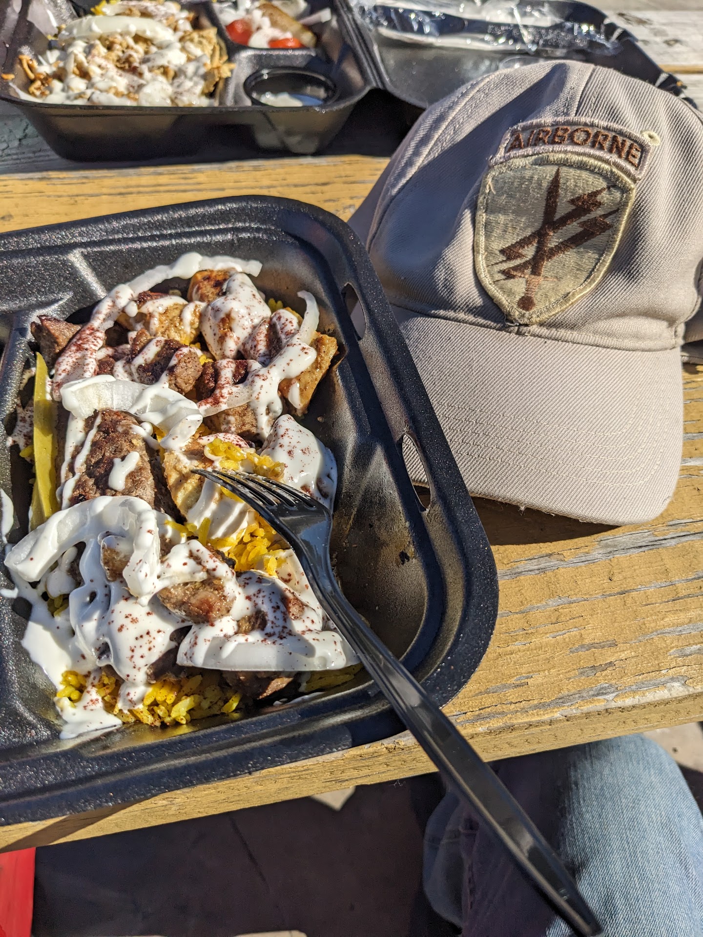 Read moreWent during my hour lunch break. Got two gyro wraps and two side orders or fries. I spent $34 in total with just that. To start, the gyro wraps were extremely thin, plus they said they canât only make it lamb meat it has to be mixed with beef. Iâm assuming to save on costs but then skimp out on portion inside of it. They also add that itâs on pita bread.. itâs not, itâs a flour tortilla. And itâs a small box of fries for $4 and they donât even put much in there, counted the fries and I got like 15 and couple of half pieces. Now for the biggest part. Was told my order would take 10-15mins. It took 38 MINUTES! Half of my lunch was GONE. And thatâs cause I had to keep going up every 5 mins only to be told he needed â1 more minuteâ. By the time I got to work I didnât even get to eat it and it was cold and soggy by the time I was out of work of course. The price is outrageous especially considering the extremely small portions especially after he took more than half an hour. NEVER...